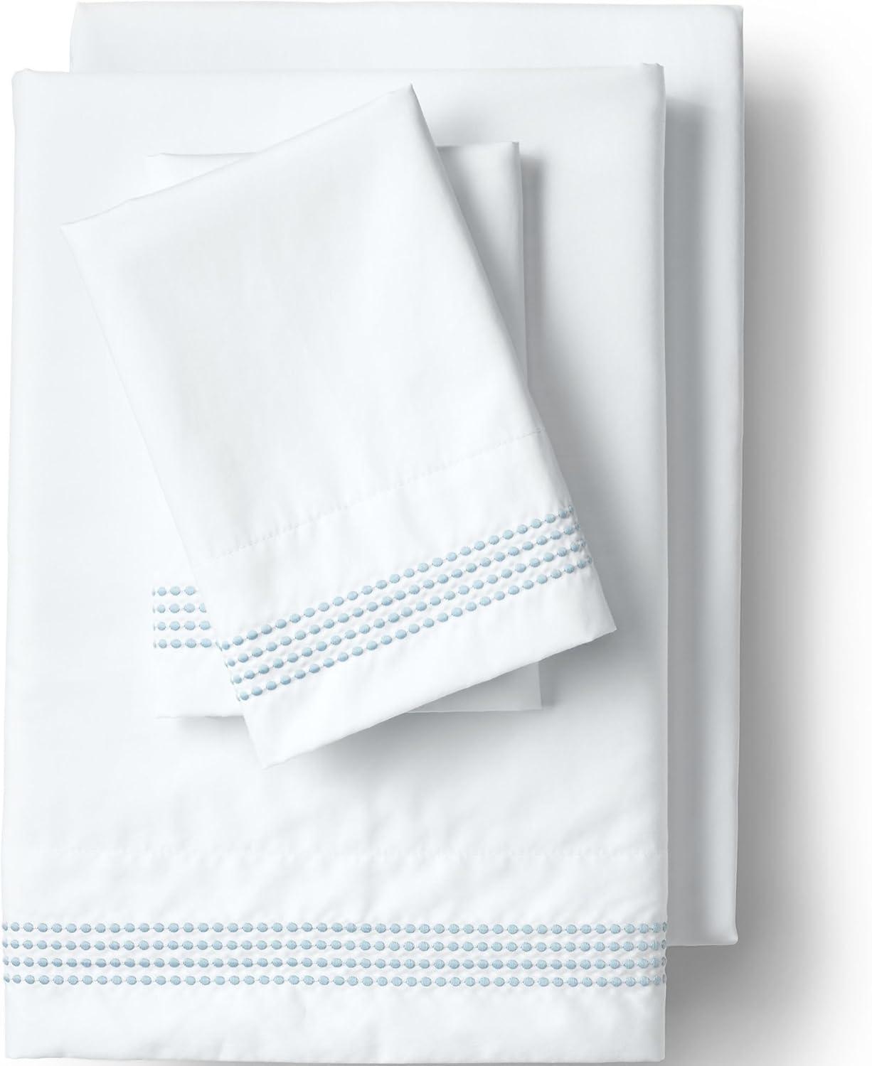 Lands’ End 400 NI Embroidered Pillowcases Dusty Blue Dots Standard(Dusty Blue Dots)