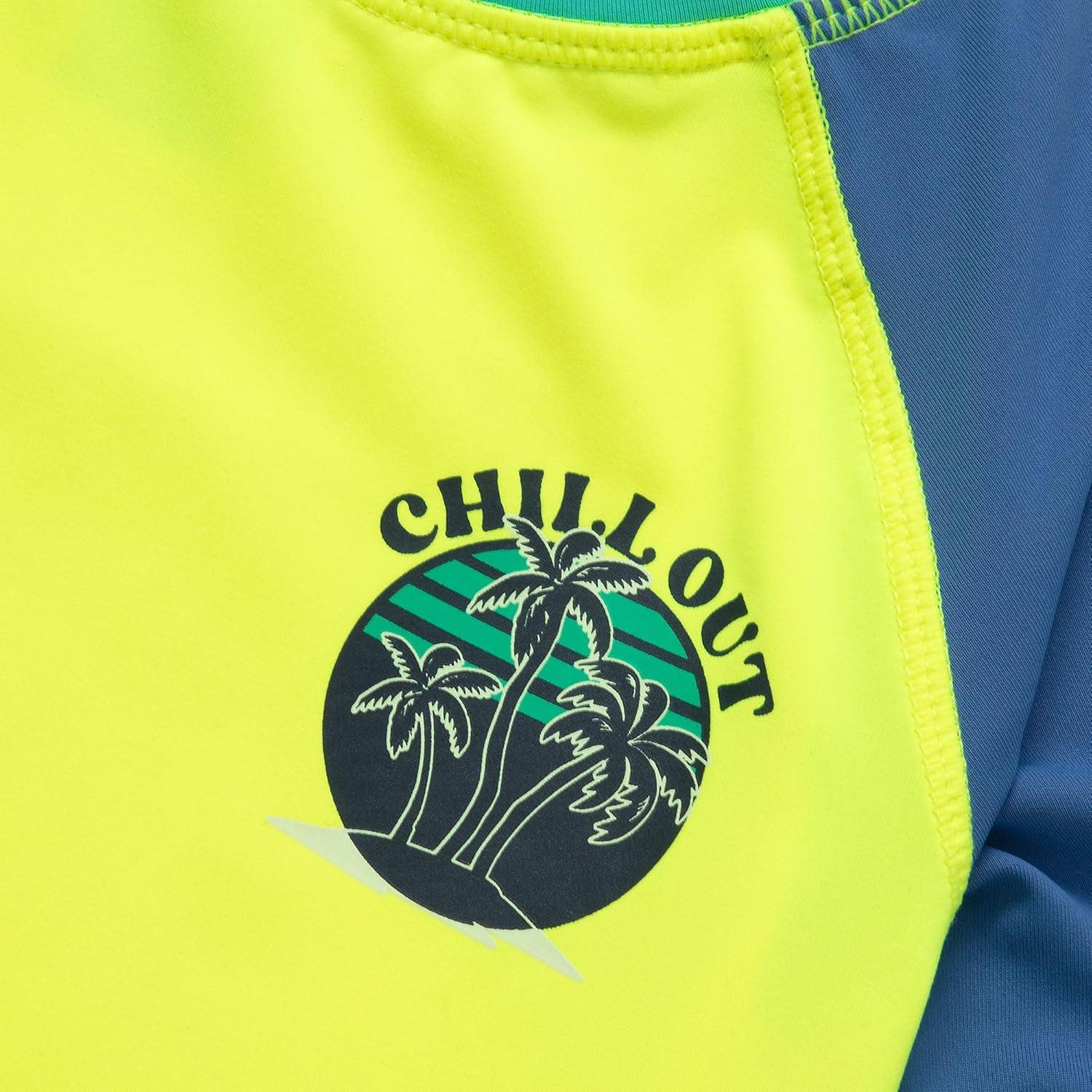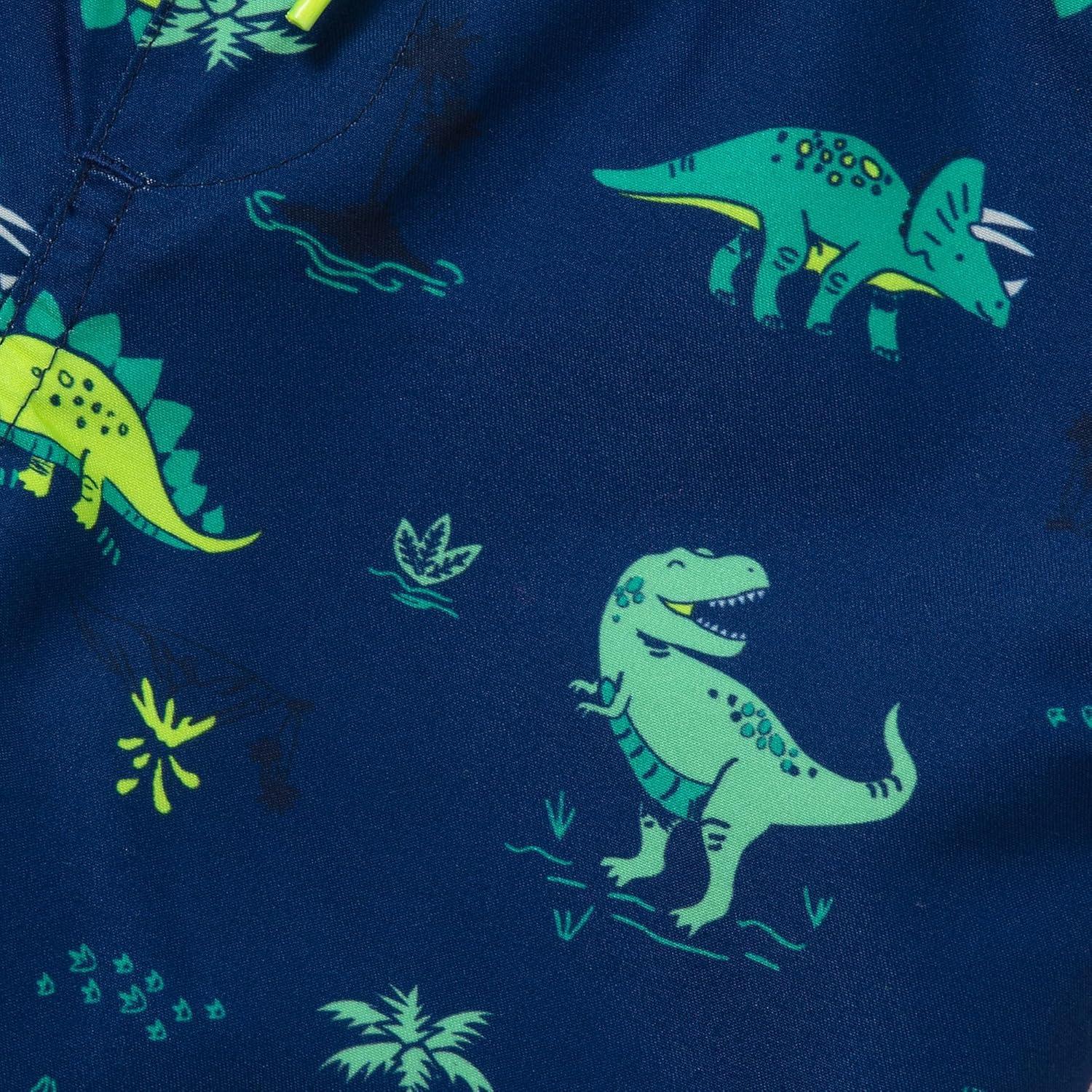 Lands’ End Boys Chlorine Resistant Short Sleeve UPF 50 Rash Guard Swim Trunk Set(Neon Yellow Little Dinos)