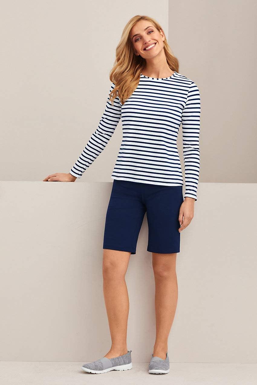 Lands’ End School Uniform Women’s Pull-On 7″ Chino Shorts(White Beach Scenic)