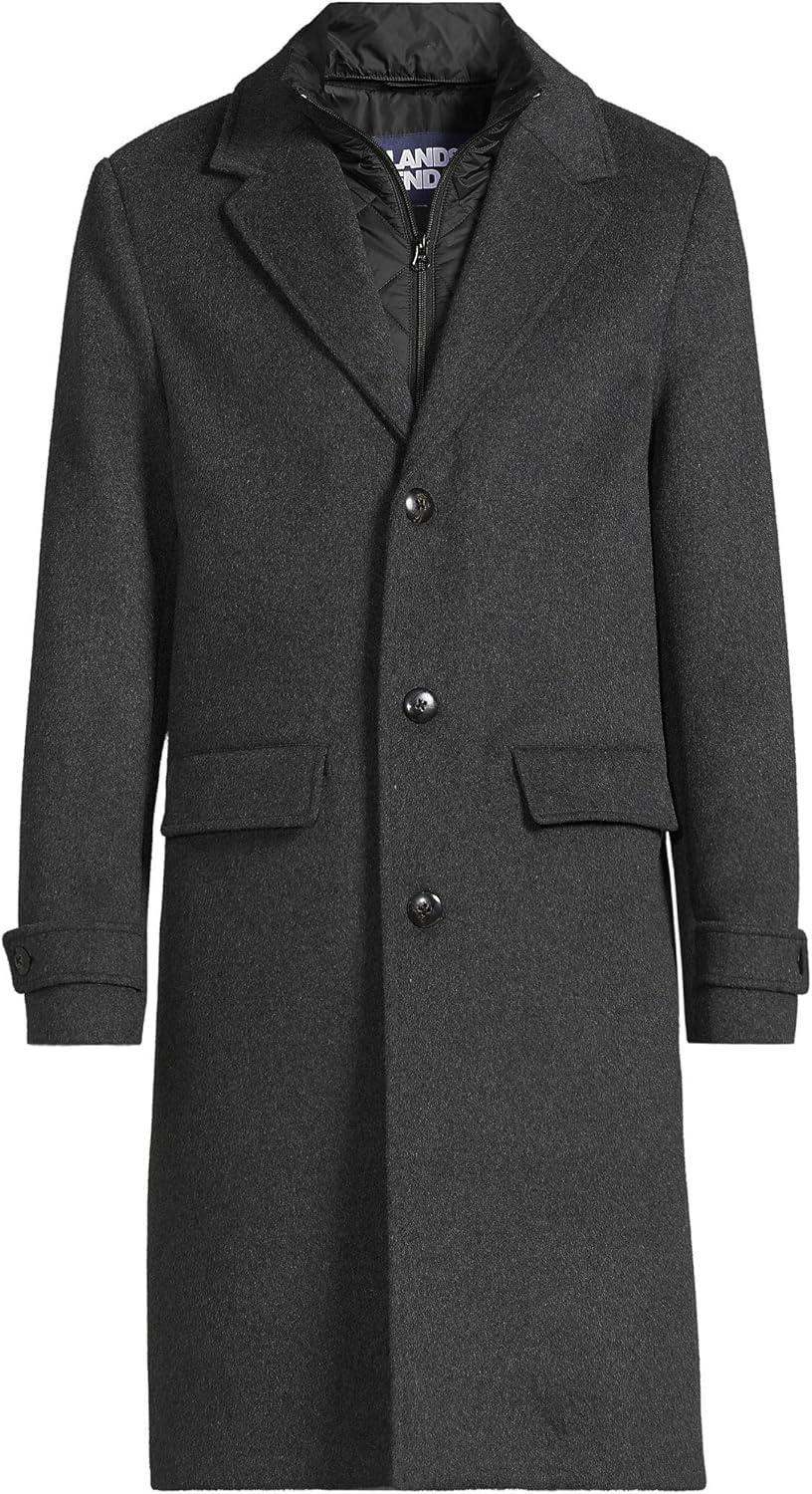 Lands’ End Men’s Wool Blend Top Coat(Dark Charcoal Heather)