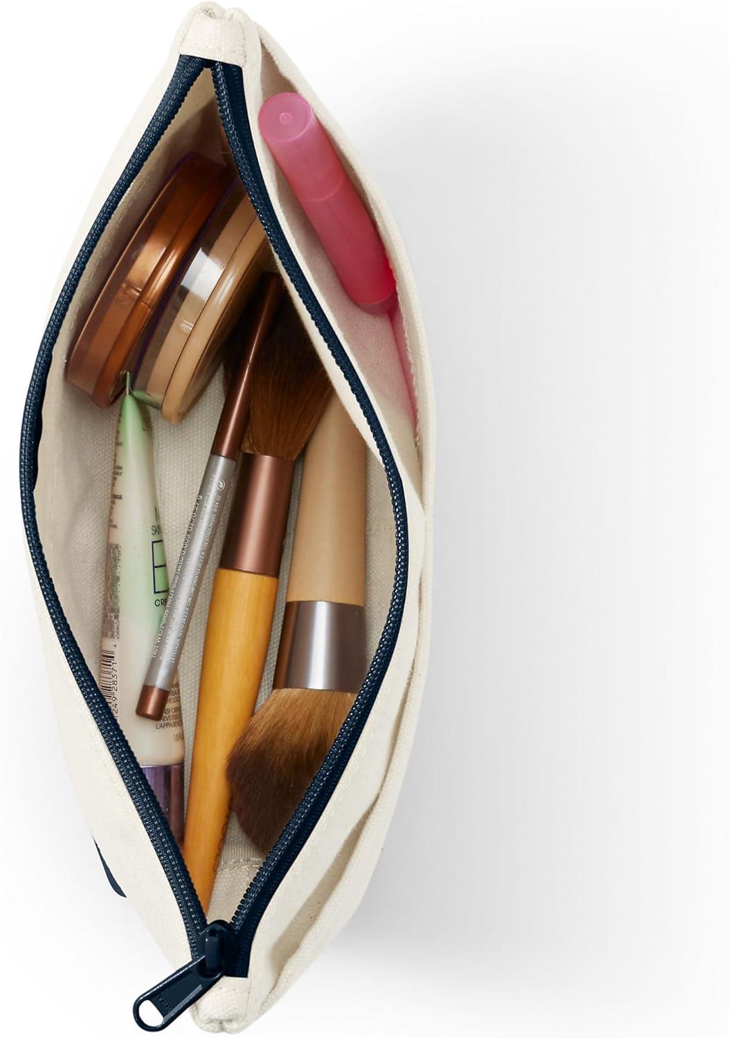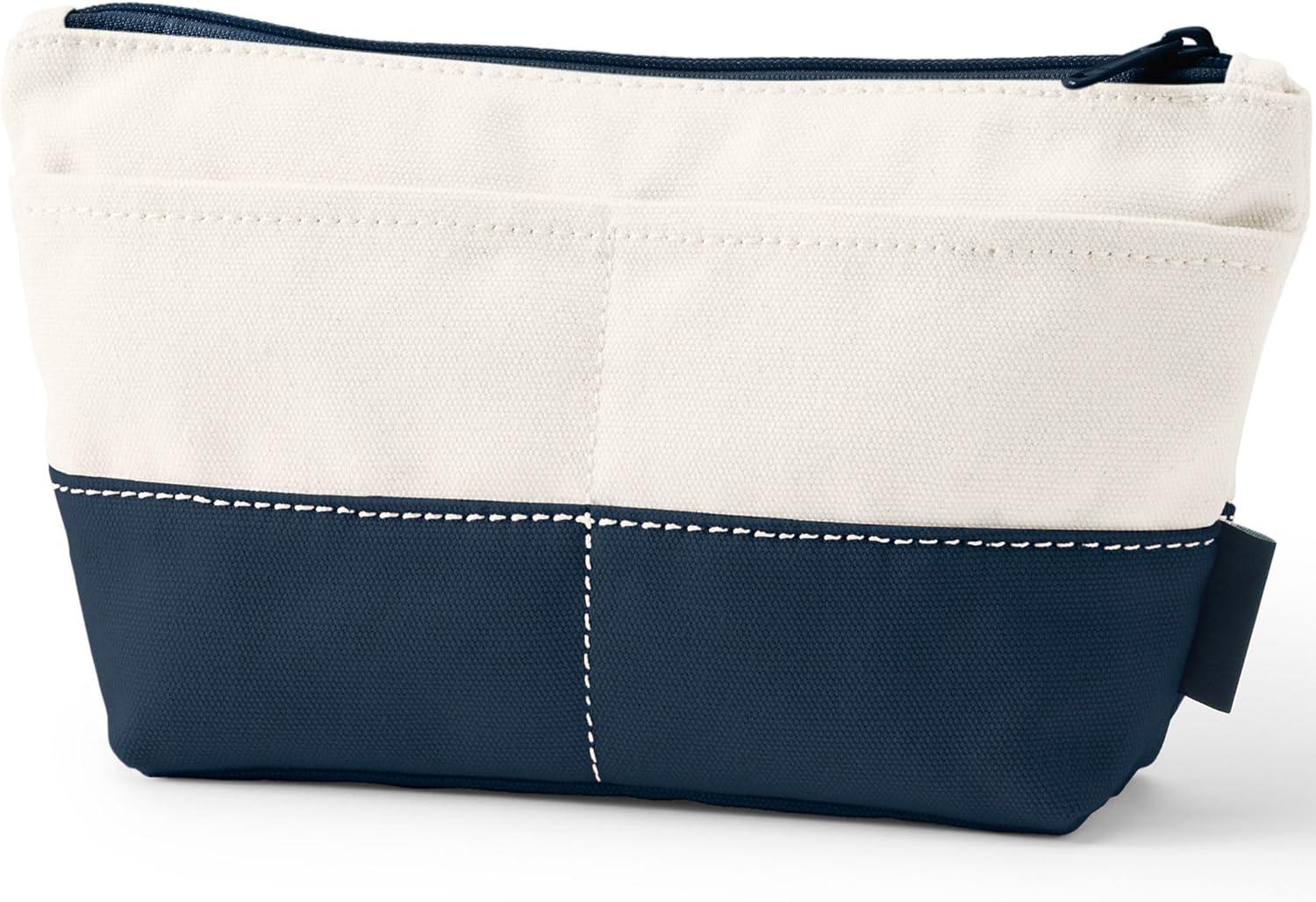 Lands’ End Zipper Canvas Pouch(Natural/Radiant Navy)