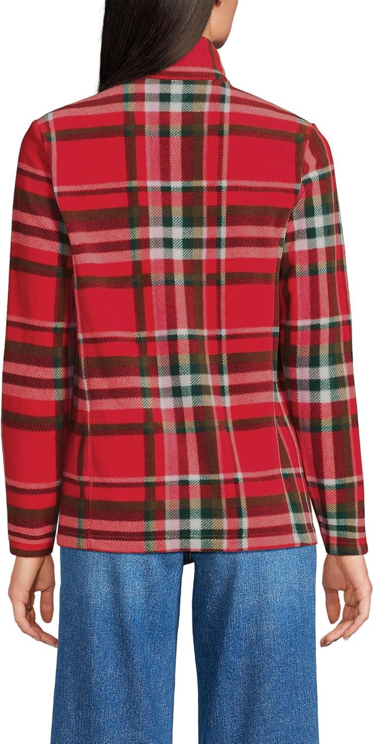 Lands’ End Anyweather Fleece Quarter Zip Pullover(Compass Red Holiday Plaid)