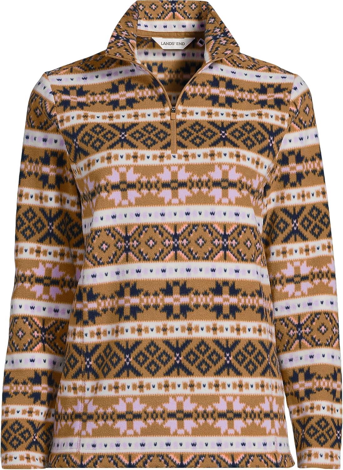 Lands’ End Anyweather Fleece Quarter Zip Pullover(Lilac/Camel Fairisle)