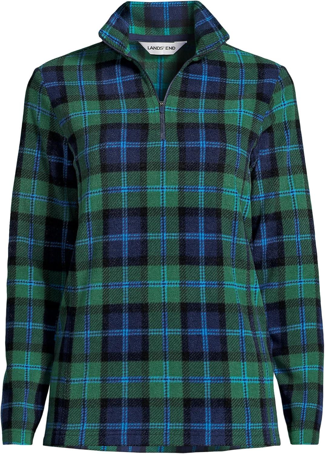 Lands’ End Anyweather Fleece Quarter Zip Pullover(Navy/Green Blackwatch)