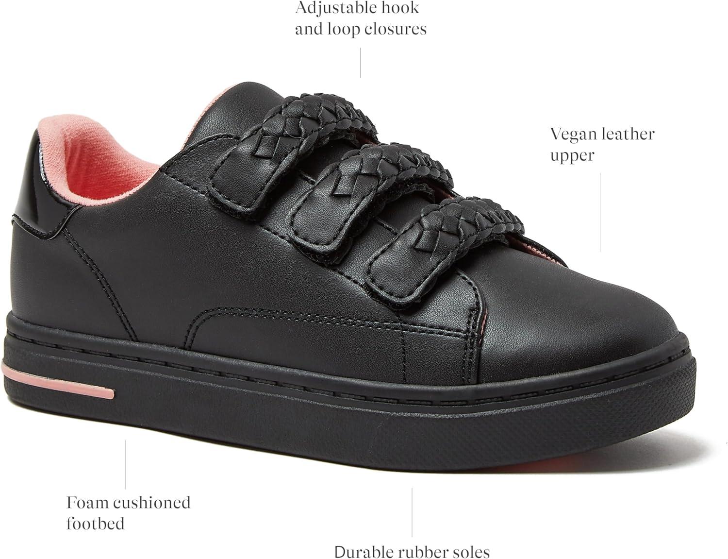 Lands’ End Boys’ and Girls’ Sneakers, No Tie Casual Tennis Shoes for Boys and Girls Size 5-10 Toddler, Little and Big Kids 11 to 7, Blue or White with Hook and Loop Straps(Black/Pink)