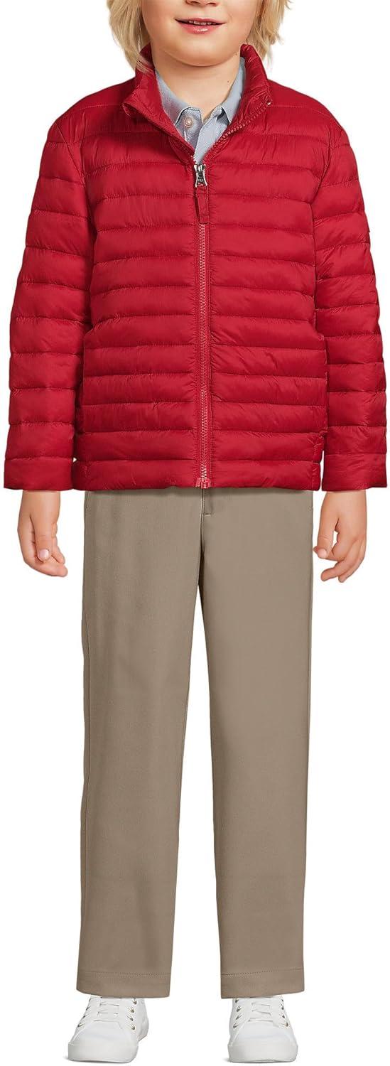 A legacy of timeless quality and dependable design, Lands' End is committed to crafting comfortable, durable clothing for everyday life. This puffer jacket embodies that promise with a lightweight feel and cozy warmth without the bulk. Its packable design and a versatile style make it the perfect choice for travel, school, and chilly weather in fall and spring. Layer it over sweaters and t-shirts, and pair it with jeans or leggings for a comfortable and stylish look. Experience a cozy and soft feel with dependable warmth. The synthetic snowfil insulation provides consistent warmth, while a smooth finish on both the inside and outside makes this jacket feel incredibly lightweight. This jacket is also built for the elements with a durable fabric that resists wind and moisture while a water-resistant finish provides extra protection. A chin guard at the top of the zipper and a fixed hood help to seal out cold drafts. This jacket is designed with smart design and quality construction. The downproof fabric keeps the insulation securely in place, while a cire-back ensures it glides on easily over other clothes. It is machine washable for easy care and features a locker loop, name tag label, and reflective logo for a final touch of thoughtful detail.
