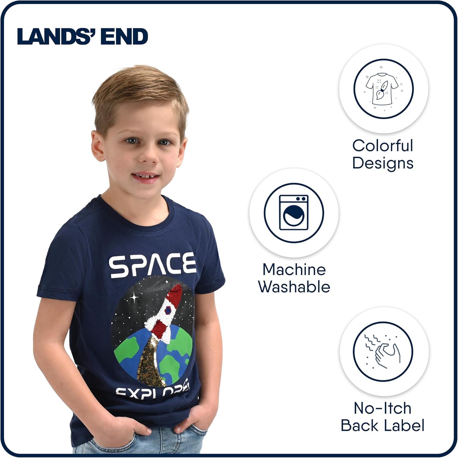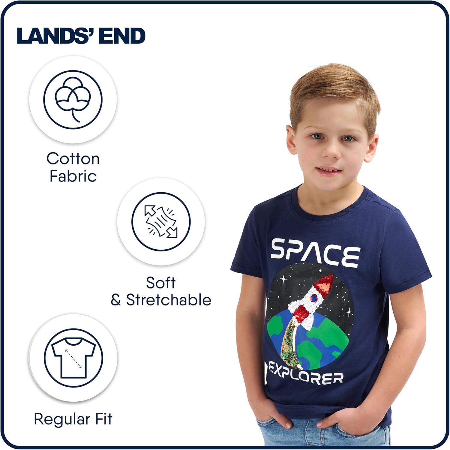 Lands’ End Boys’ Soft Cotton Short Sleeve Graphic T-Shirt(Deep Sea Navy)
