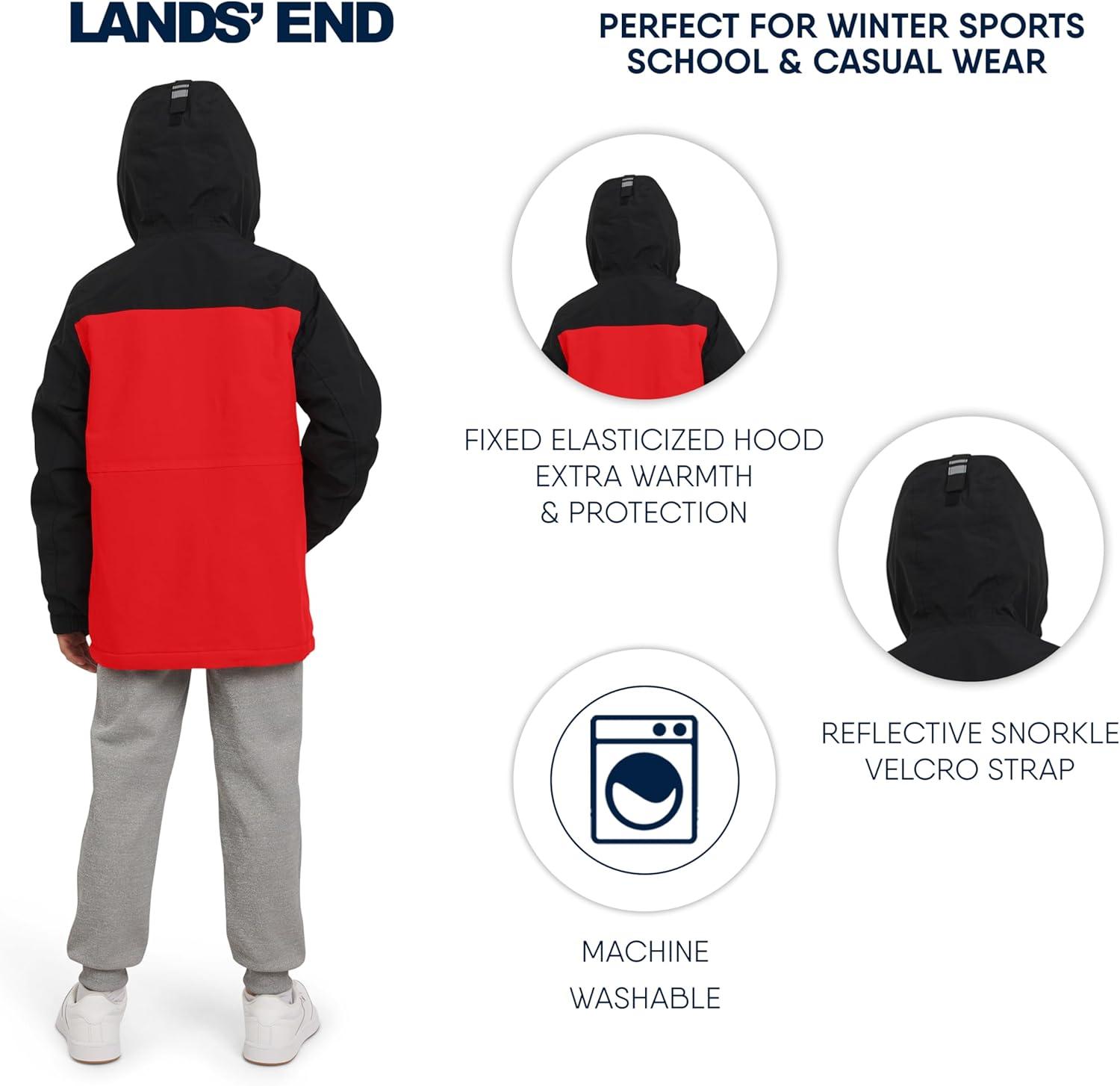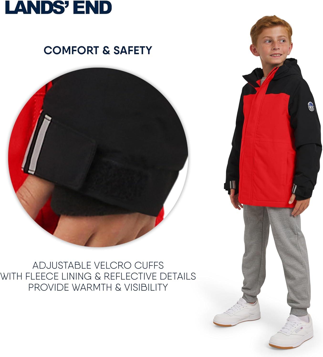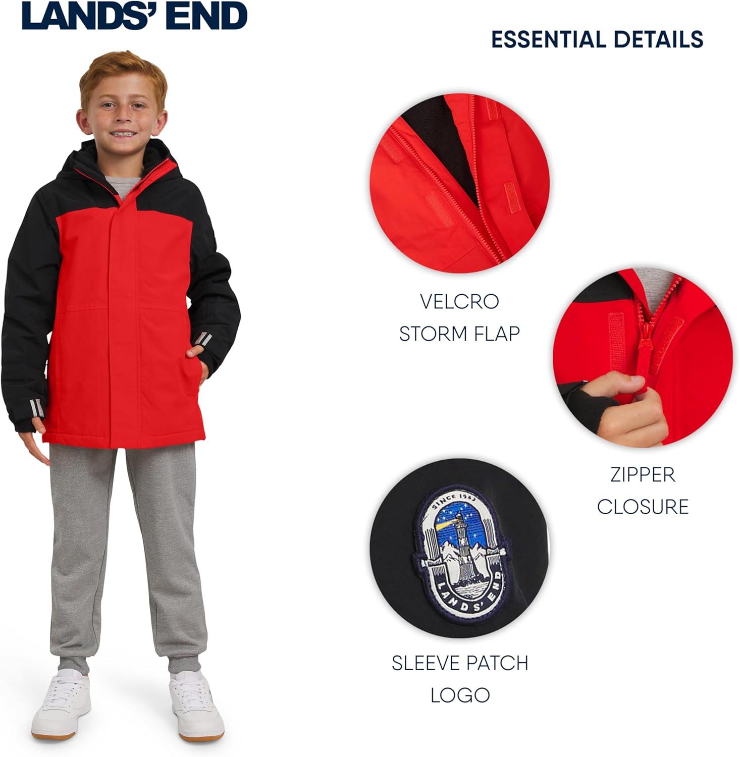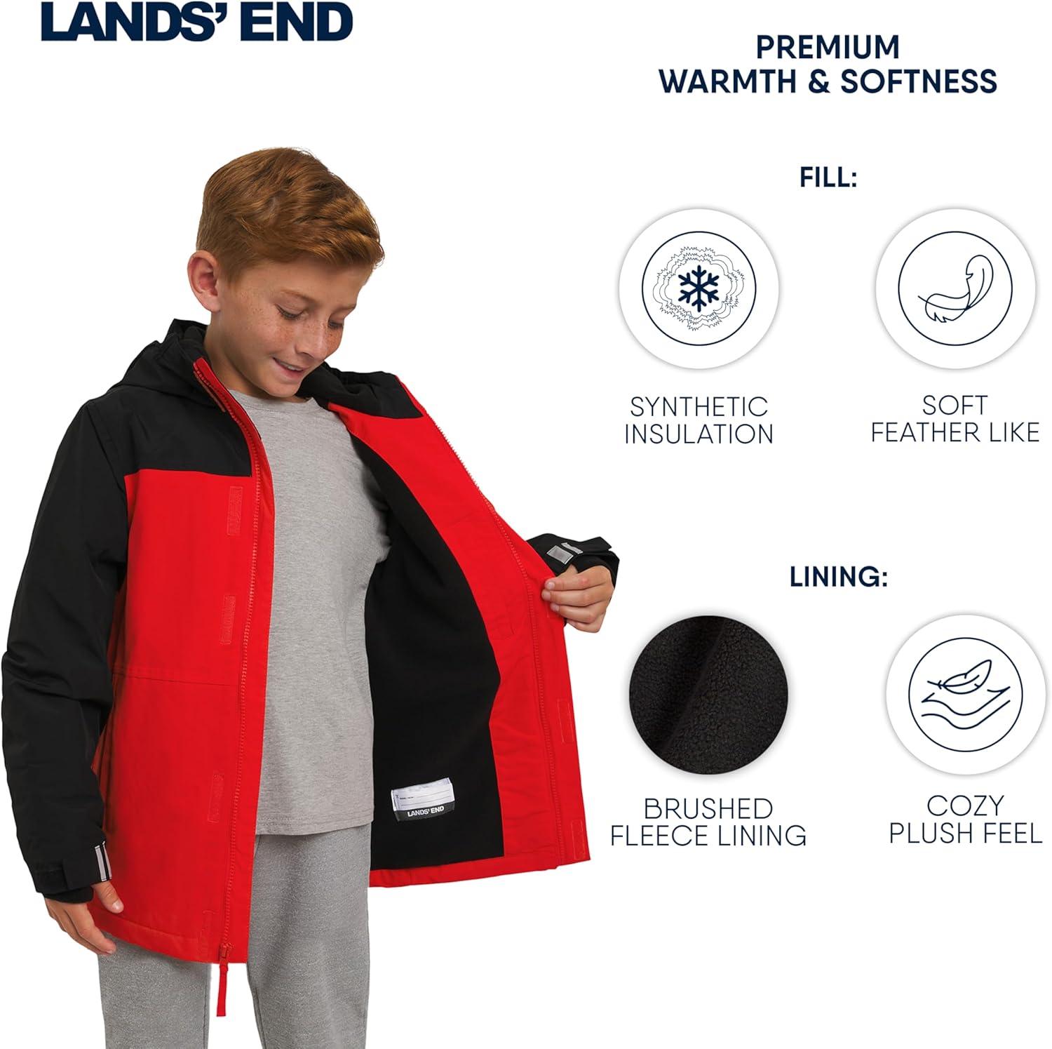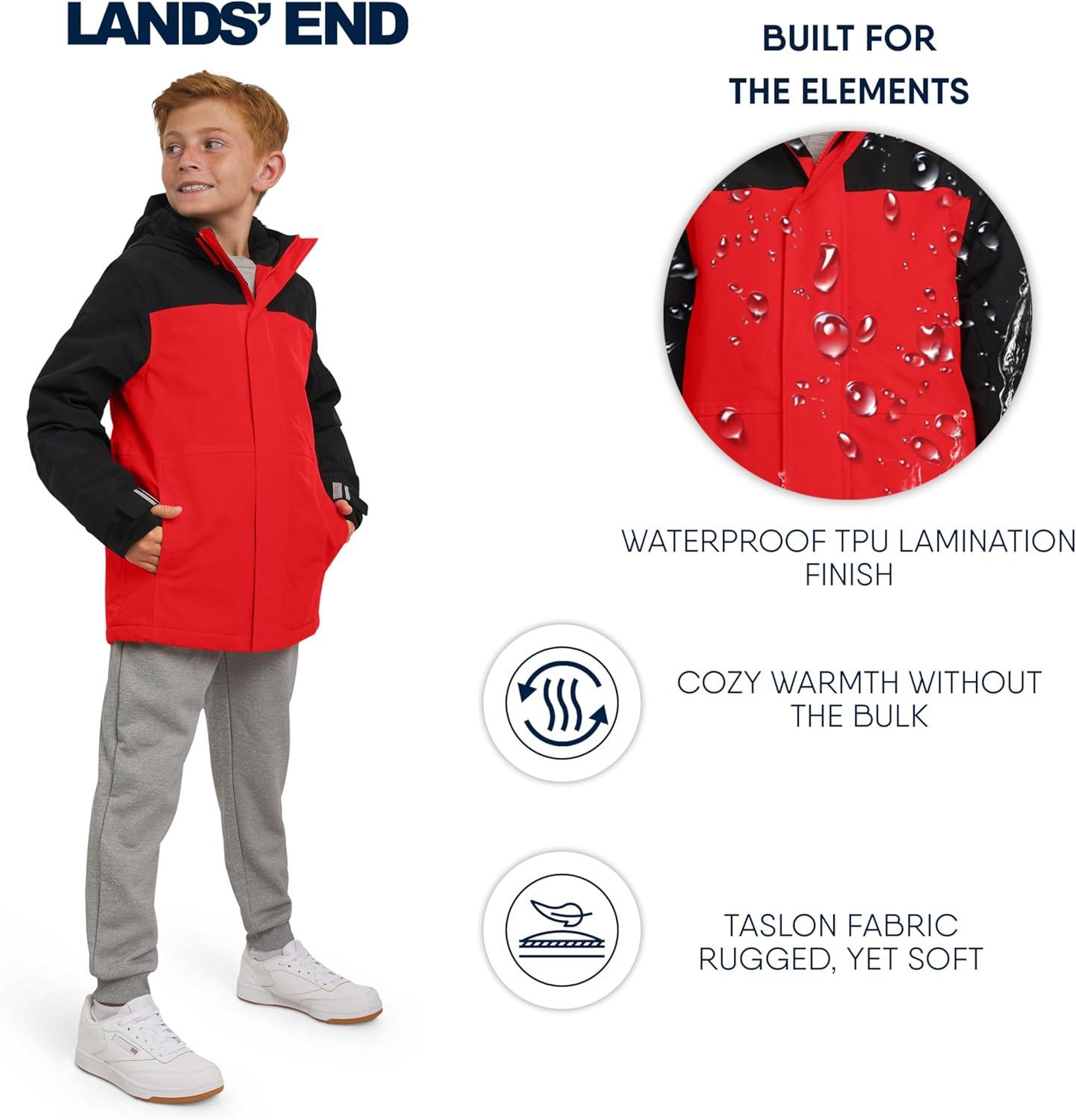 Lands’ End Boys’ Squall Waterproof Fleece Lined Insulated Jacket(Fiery Red)