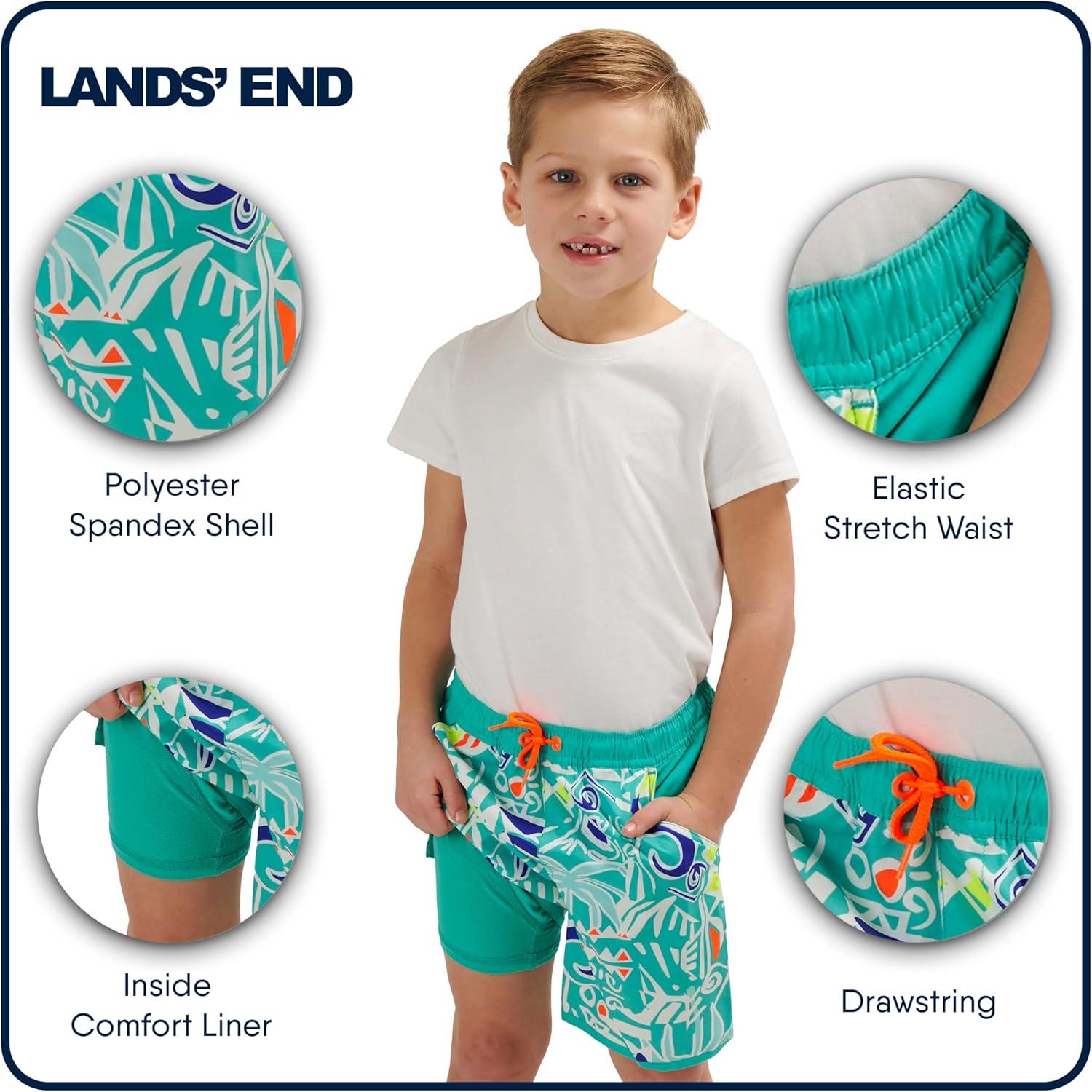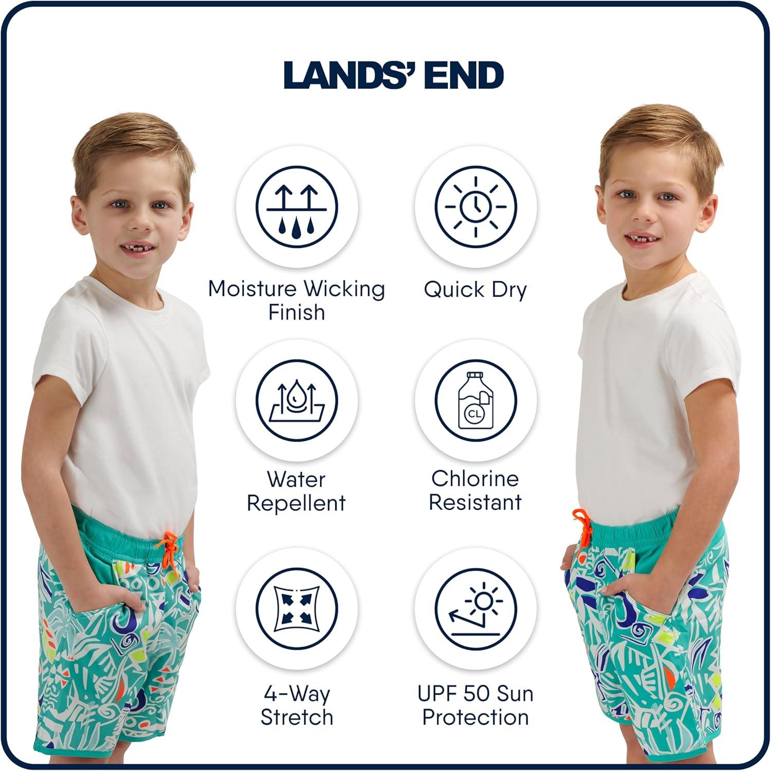 Let your little one make a splash in style and comfort with the Lands' End Boys' Swim Trunks. Designed with the brand's signature focus on both comfort and style, these quick-drying swim shorts are crafted to look good and feel even better. Whether he's building sandcastles on the beach, diving into the pool, or enjoying backyard water fun, these swim trunks provide the perfect blend of functionality and style, ensuring he's ready for any aquatic adventure. Experience premium quality with these chlorine-resistant swim trunks. The lightweight polyester shell and comfortable lining provide a super-soft feel that kids will love, while the stretchable waistband with drawstring ensures a secure and customizable fit. Convenient pockets add a touch of practicality, allowing him to keep small essentials close at hand. These swim trunks aren't just about comfort; they also offer UPF 50 sun protection, shielding him from harmful UV rays and keeping him safe during sunny days. These boys' swim trunks are designed with a regular fit and a 6″ inseam, providing comfortable all-day wear. Available in sizes Small, Medium, Large, and X-Large, they cater to a range of growing boys. For a more relaxed, roomier fit, consider sizing up. And when it's time for cleanup, these low-maintenance swim trunks are machine washable, making laundry a breeze. Simply toss them in the wash, and they'll be ready for their next water adventure. Combining premium quality, sun protection, and effortless care, these Lands' End swim trunks are the perfect choice for boys who love to make a splash.