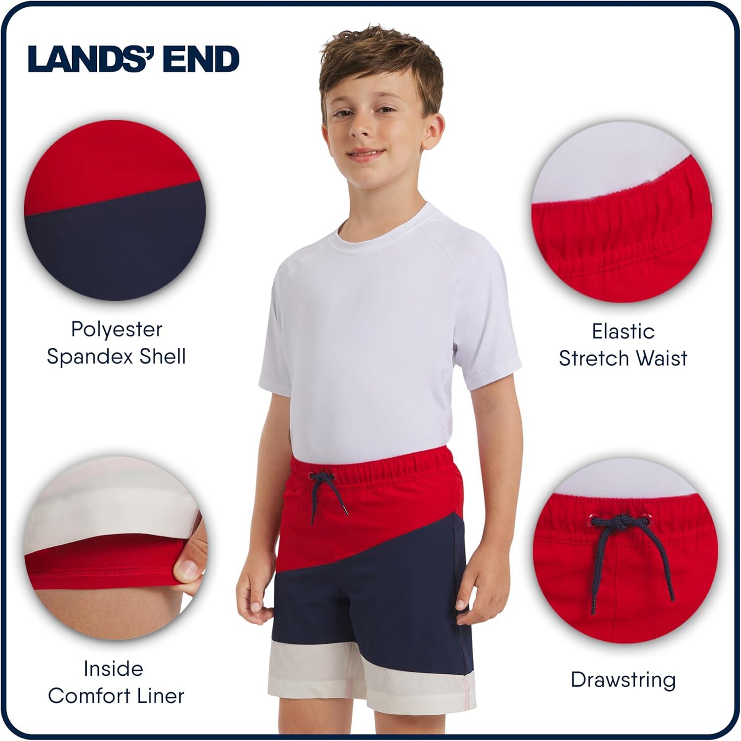 Lands’ End Boys’ Swimwear UPF 50 Comfort Liner Swim Trunks (S-XL)(Lychee)