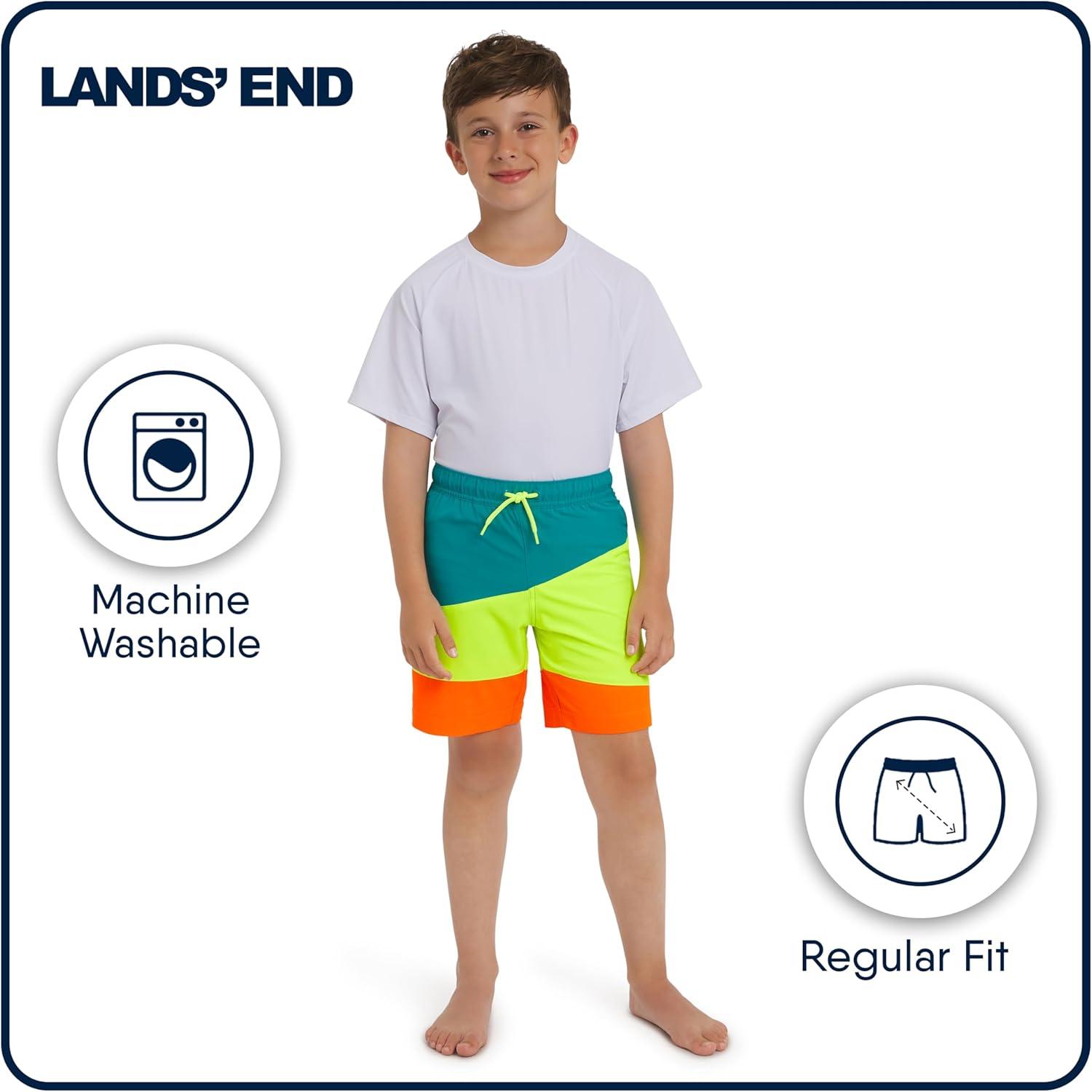 Let your little one make a splash in style and comfort with the Lands' End Boys' Swim Trunks. Designed with the brand's signature focus on both comfort and style, these quick-drying swim shorts are crafted to look good and feel even better. Whether he's building sandcastles on the beach, diving into the pool, or enjoying backyard water fun, these swim trunks provide the perfect blend of functionality and style, ensuring he's ready for any aquatic adventure. Experience premium quality with these chlorine-resistant swim trunks. The lightweight polyester shell and comfortable lining provide a super-soft feel that kids will love, while the stretchable waistband with drawstring ensures a secure and customizable fit. Convenient pockets add a touch of practicality, allowing him to keep small essentials close at hand. These swim trunks aren't just about comfort; they also offer UPF 50 sun protection, shielding him from harmful UV rays and keeping him safe during sunny days. These boys' swim trunks are designed with a regular fit and a 6″ inseam, providing comfortable all-day wear. Available in sizes Small, Medium, Large, and X-Large, they cater to a range of growing boys. For a more relaxed, roomier fit, consider sizing up. And when it's time for cleanup, these low-maintenance swim trunks are machine washable, making laundry a breeze. Simply toss them in the wash, and they'll be ready for their next water adventure. Combining premium quality, sun protection, and effortless care, these Lands' End swim trunks are the perfect choice for boys who love to make a splash.
