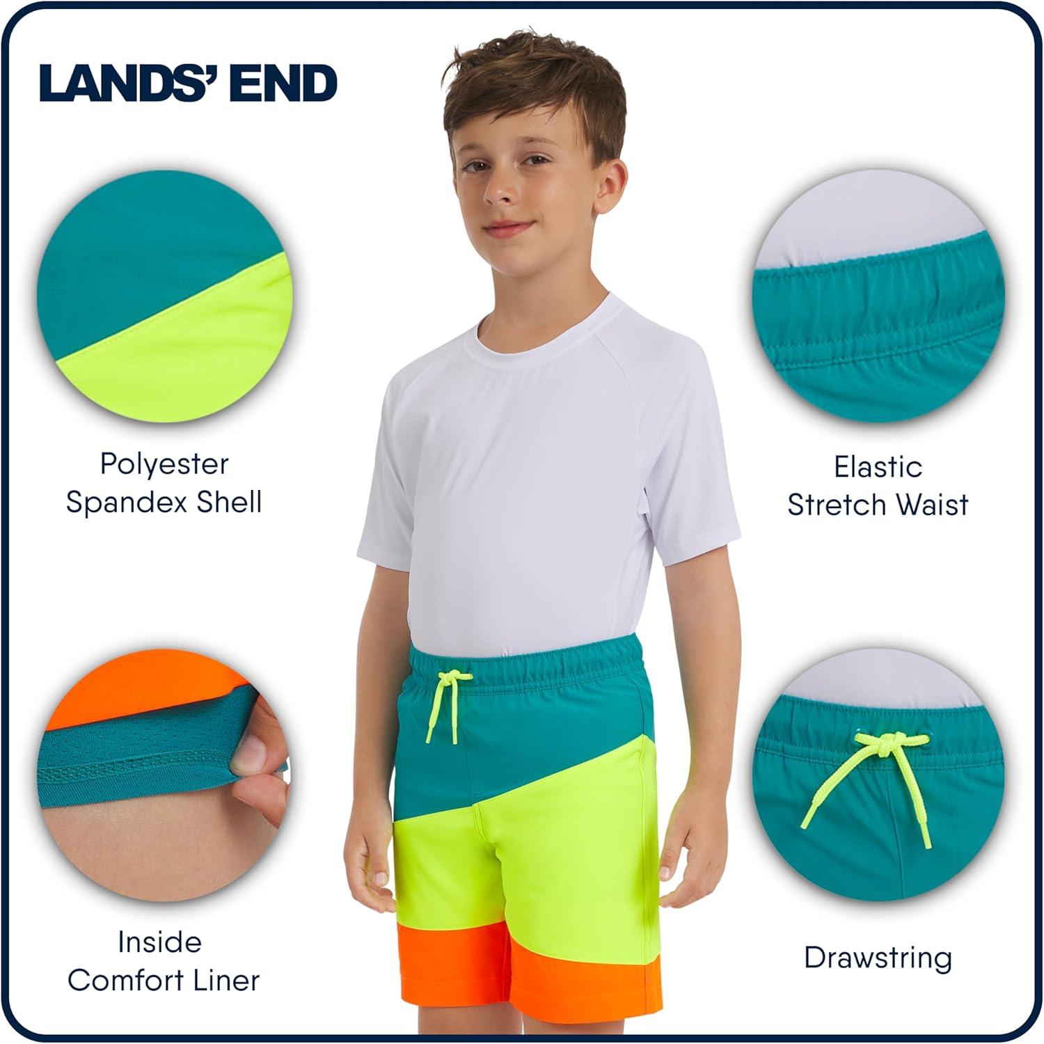 Lands’ End Boys’ Swimwear UPF 50 Comfort Liner Swim Trunks (S-XL)(Neon Yellow)