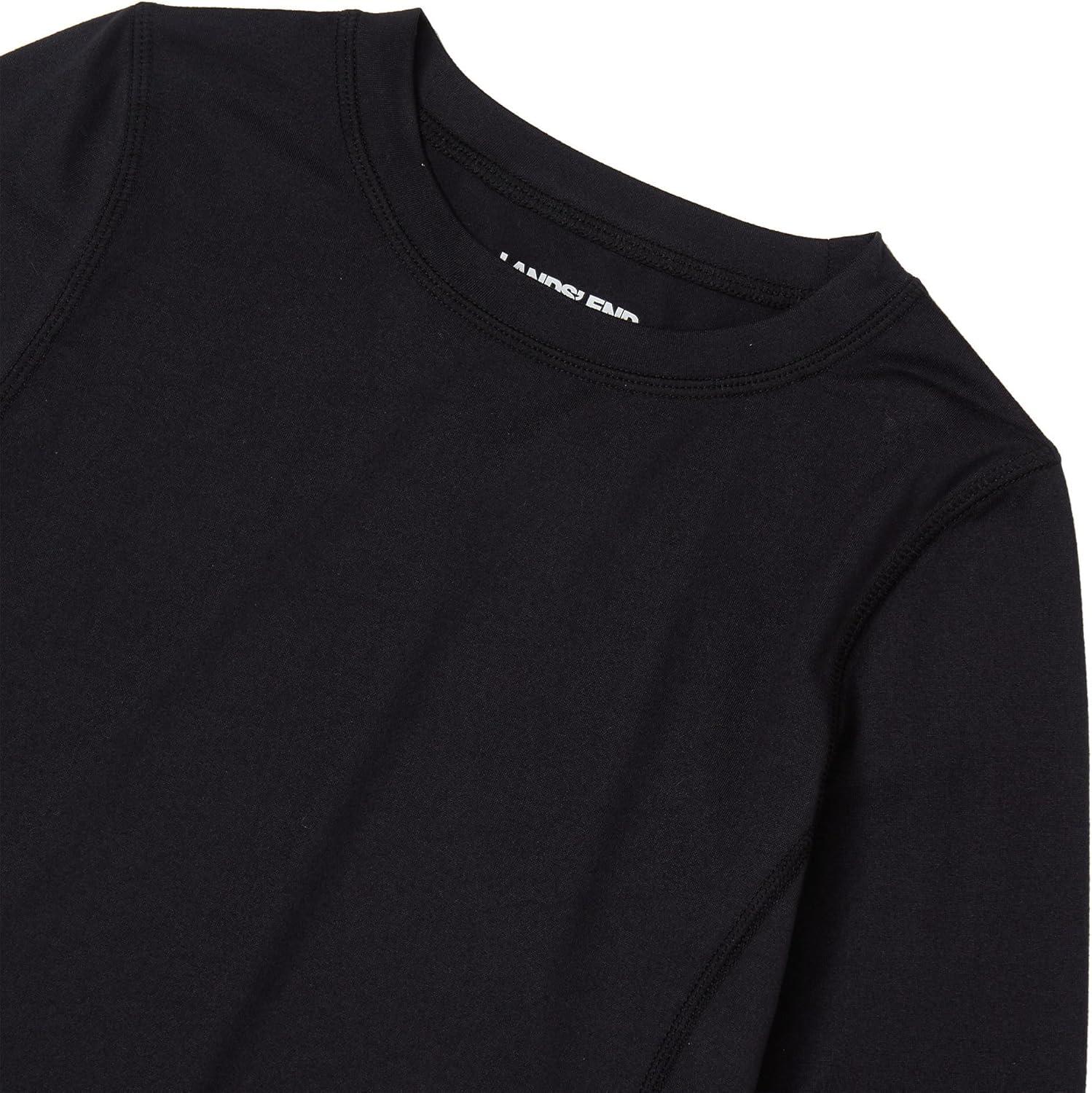 Lands’ End Boys Thermal Base Layer Long Underwear Thermaskin Crew Neck Shirt(True Black)