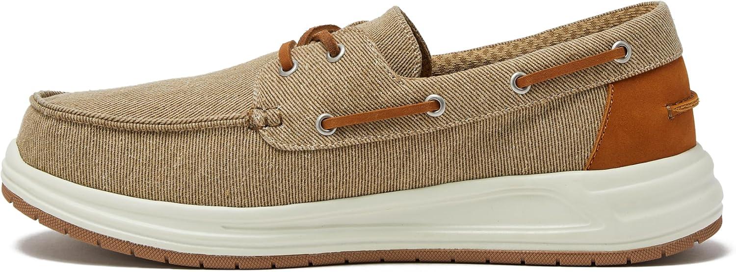 Lands’ End Canvas Boat Shoes Men, Deck Shoes Mens Boat Shoes Slip Ons – Navy Blue, Tan Brown or Grey Mens Casual Shoes, Size 8-13(Desert Tan)