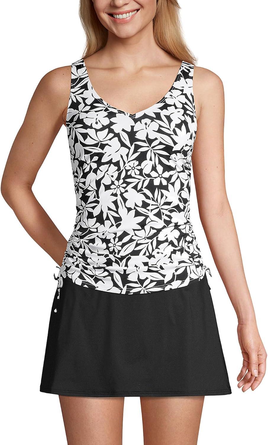 Lands’ End Chlorine Resistant Underwire Tankini Swimsuit Top(Black Havana Floral)