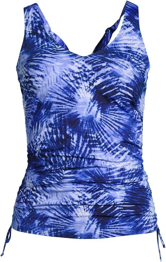 Lands’ End Chlorine Resistant Underwire Tankini Swimsuit Top(Deep Sea Navy Tie Dye Palm)