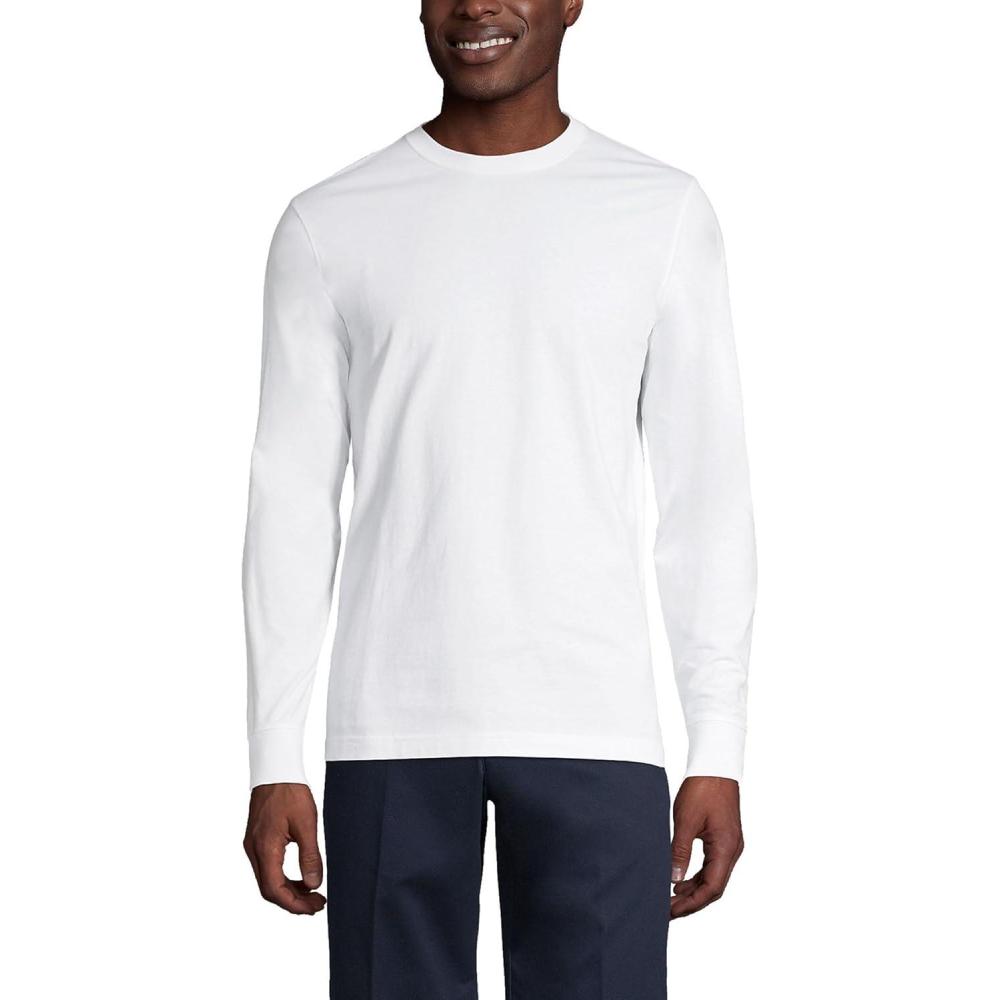 Lands’ End Essentials Men’s Long-Sleeve Soft Cotton T-Shirt – Relaxed Easy Fit(White)