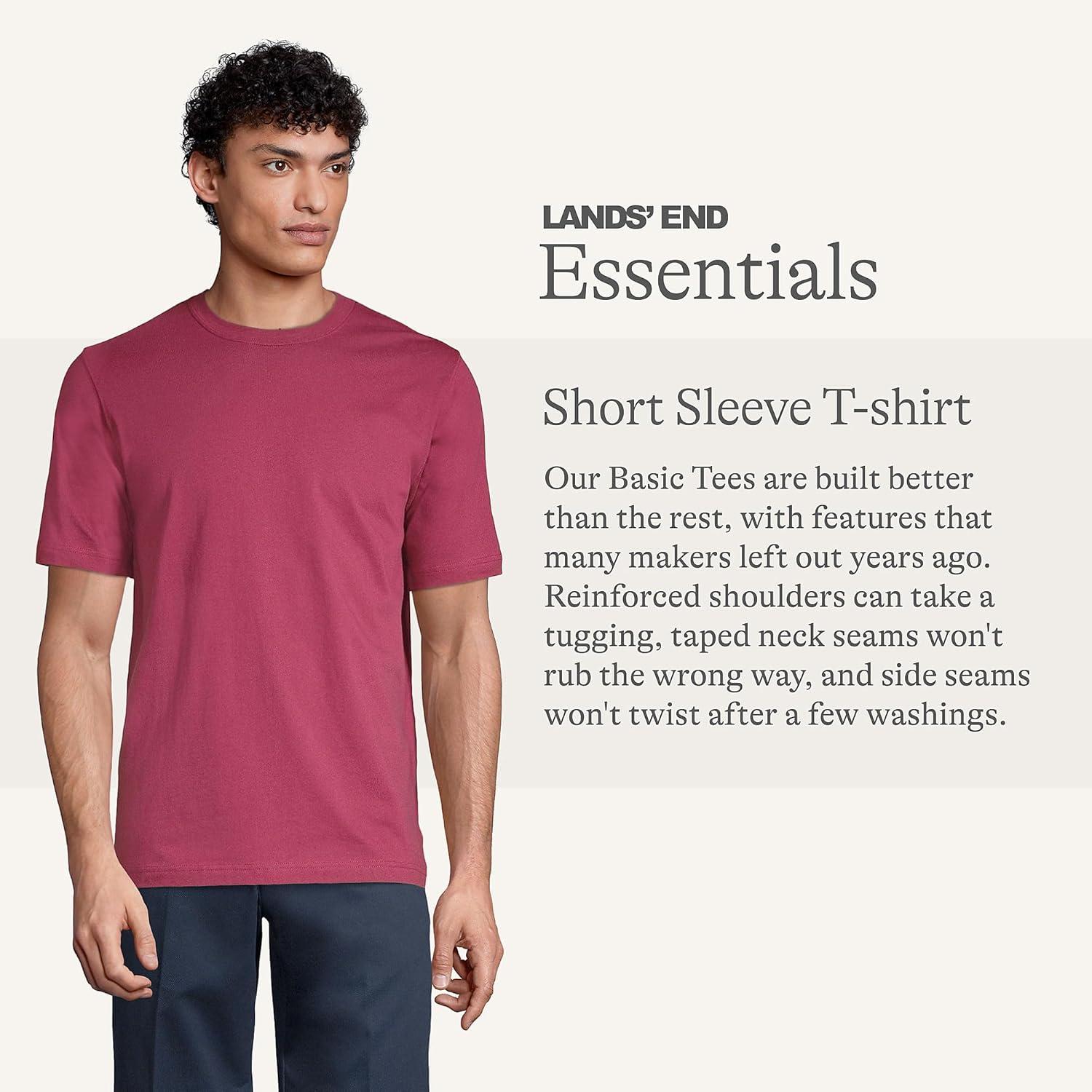 Lands’ End Essentials Men’s Short-Sleeve Soft Cotton T-Shirt – Relaxed Easy Fit(Burgundy)
