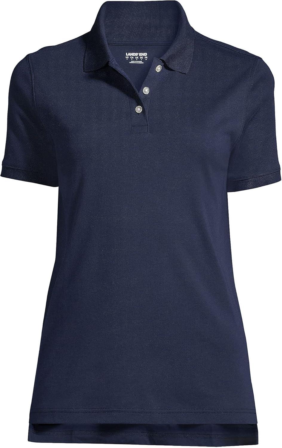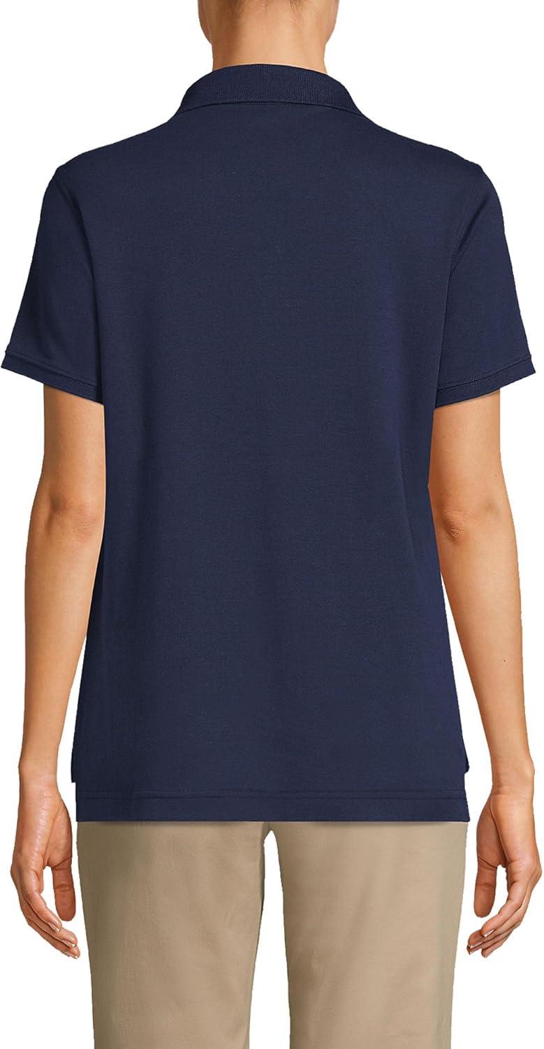 Lands’ End Essentials Women’s Short Sleeve All Day Comfort Polo Shirt – 100% Cotton Won’t Shrink Pill Fade(Classic Navy)
