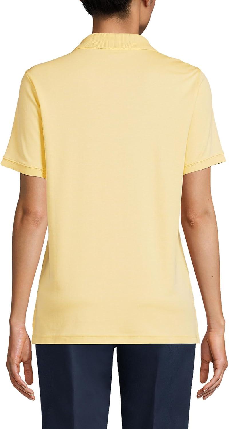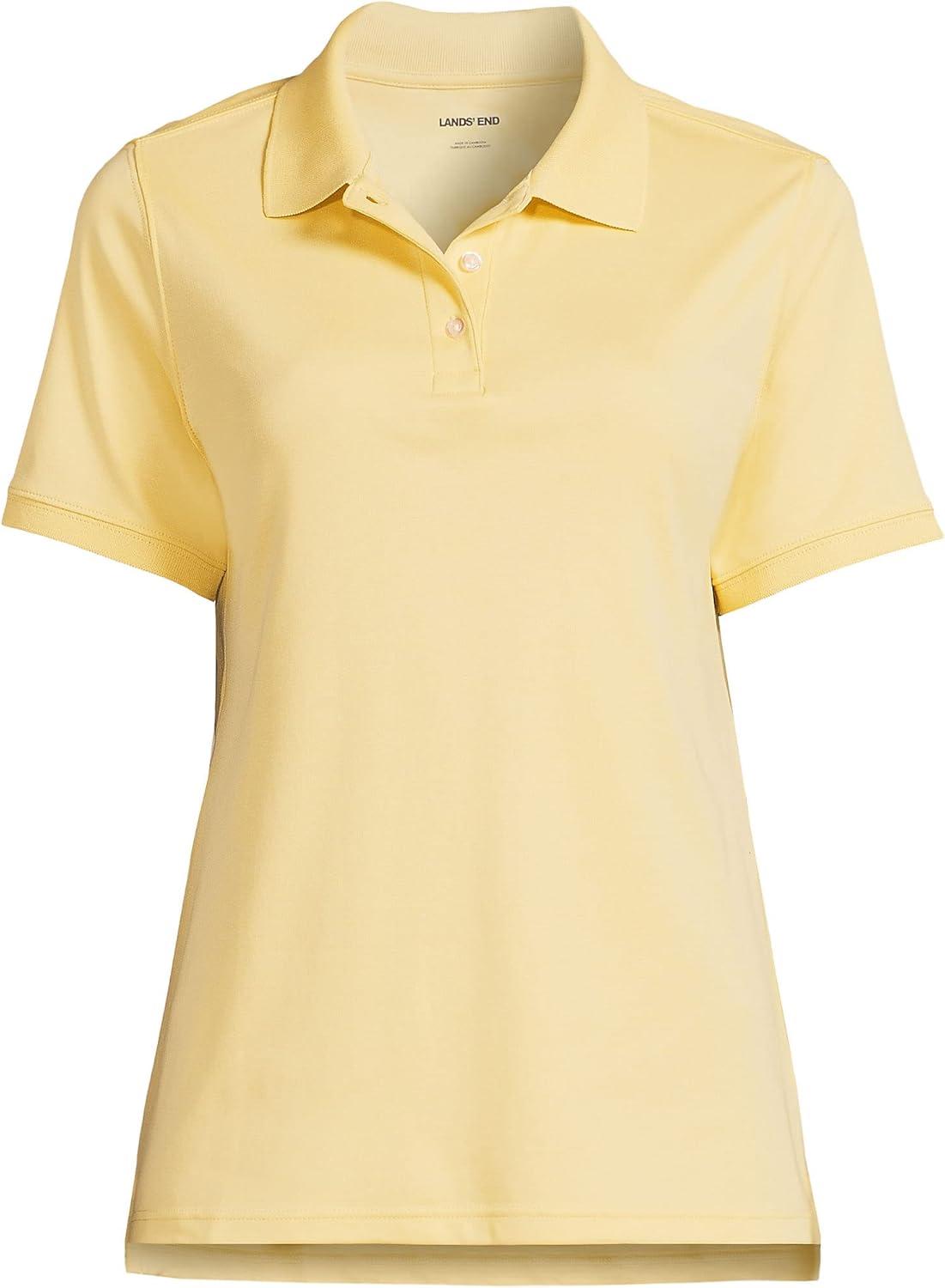 Lands’ End Essentials Women’s Short Sleeve All Day Comfort Polo Shirt – 100% Cotton Won’t Shrink Pill Fade(Maize)