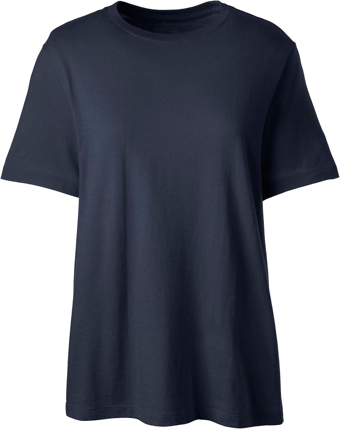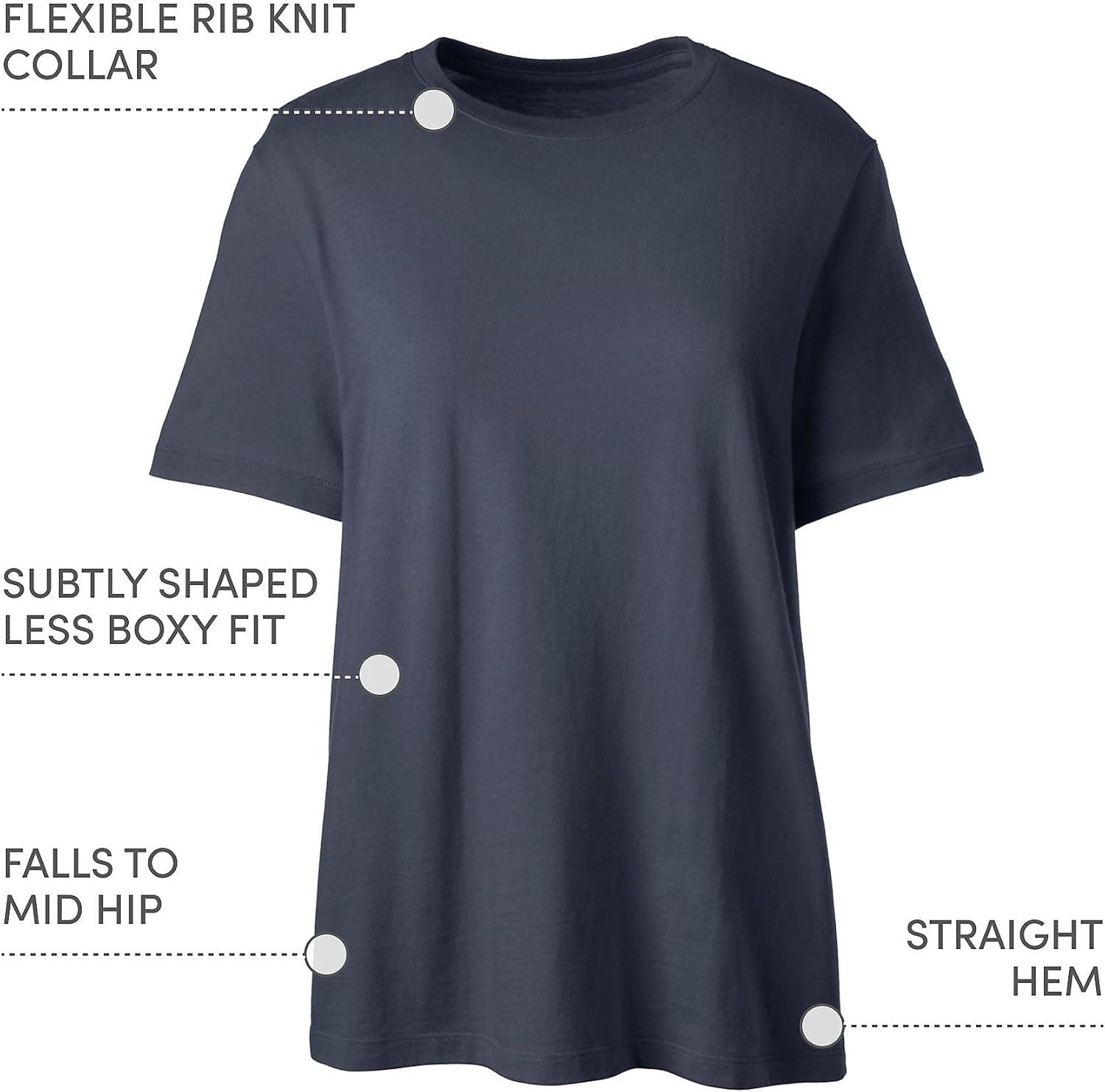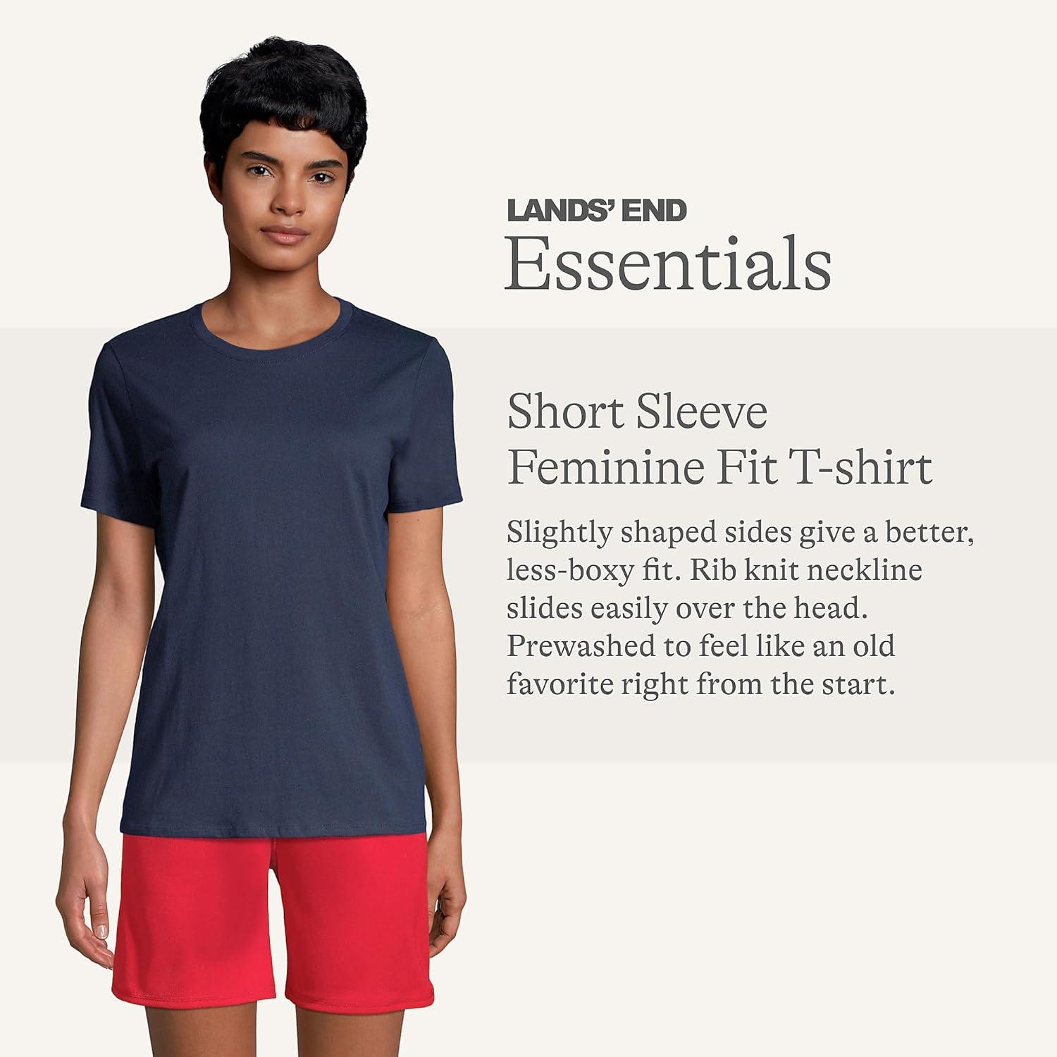 Lands’ End Essentials Women’s Short-Sleeve Soft Cotton T-Shirt – Tailored Feminine Fit(Classic Navy)
