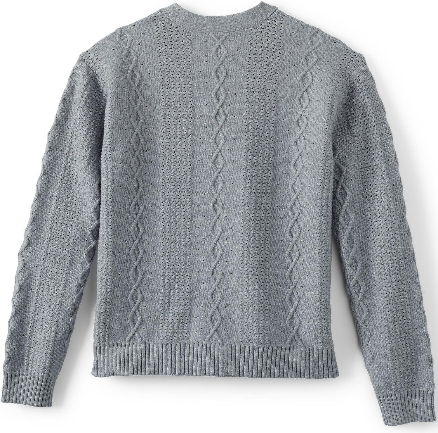 Lands’ End Girls Button Front Cable Cardigan(Gray Heather)