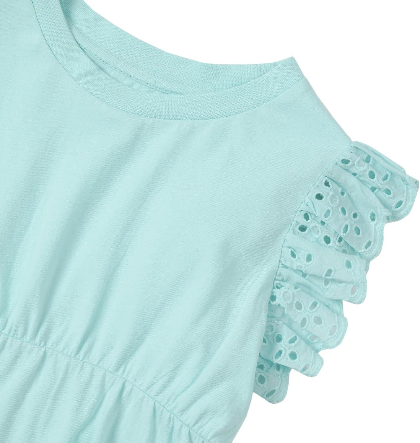 Lands’ End Girls Flutter Sleeve Tiered Peasant Top(Aruba Blue)