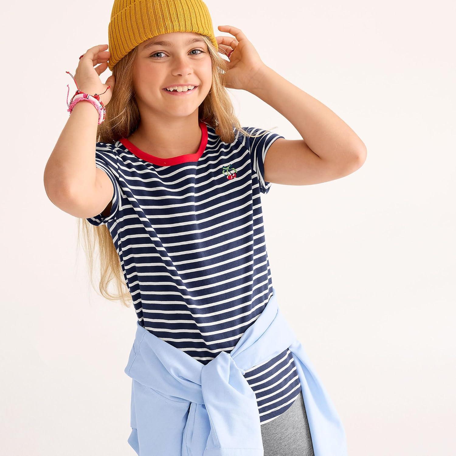 Lands’ End Girls Graphic Tee(Navy Stripe Cherry Hearts)