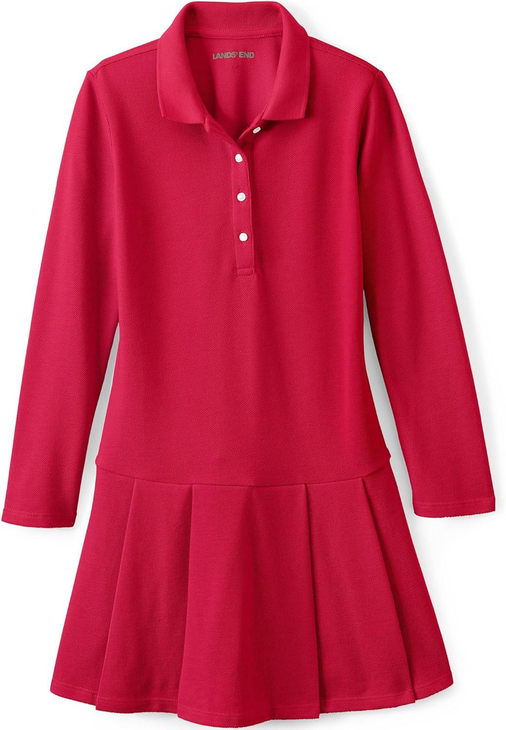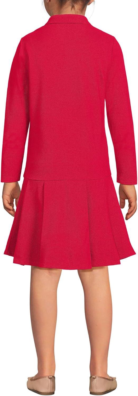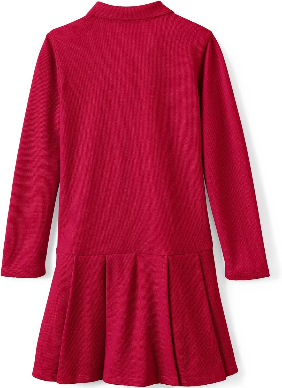 Lands’ End Girls Long Sleeve Mesh Pleated Polo Dress(Red)
