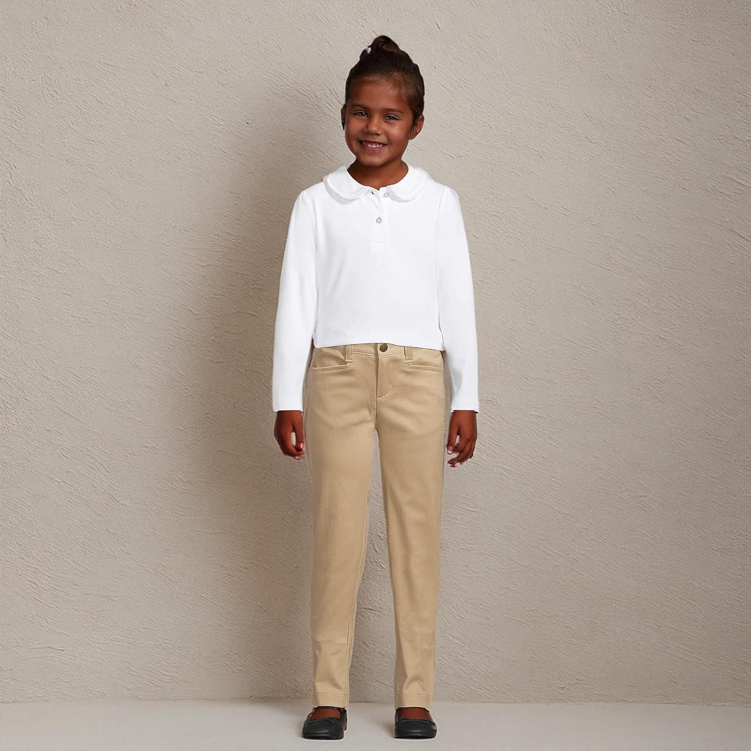 Lands’ End Girls Long Sleeve Ruffled Peter Pan Collar Knit Shirt(White)