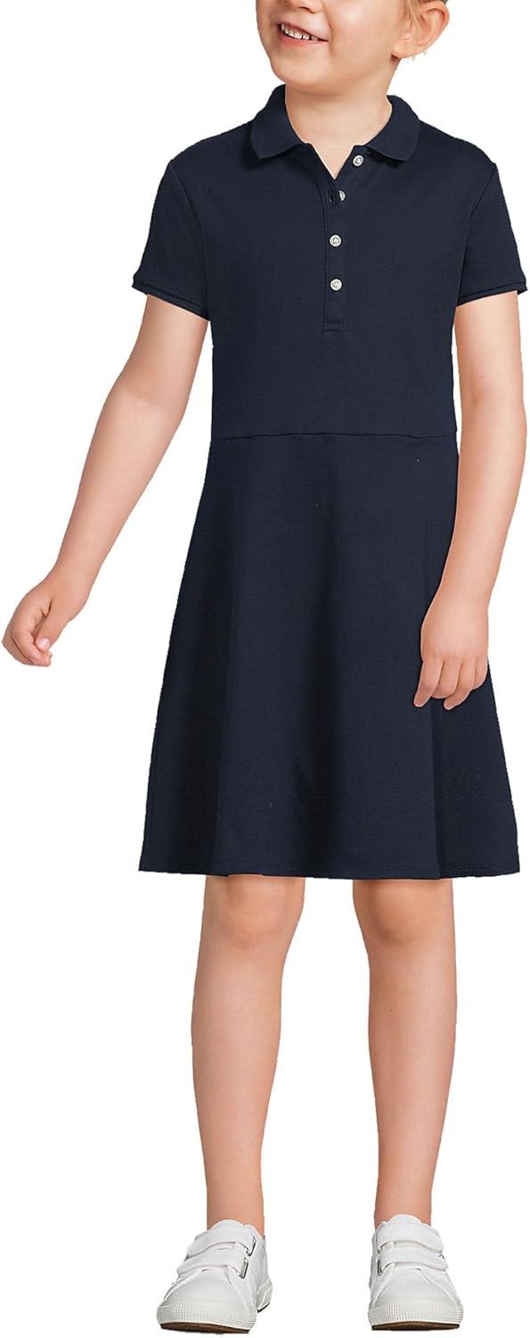 Lands’ End Girls Short Sleeve Interlock Polo Dress(Classic Navy)
