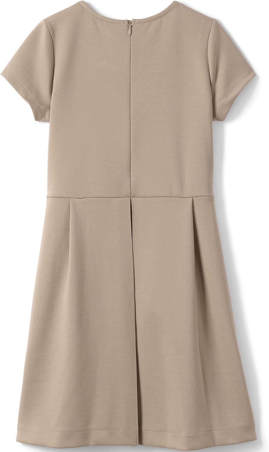 Lands’ End Girls Short Sleeve Ponte Dress(Khaki)