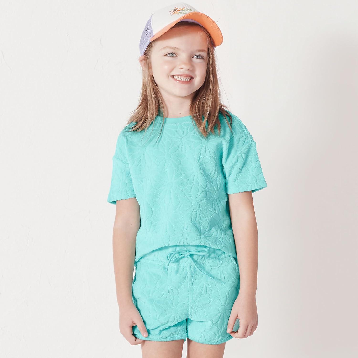 Lands’ End Girls Terry T-Shirt(Baja Blue Daisies)