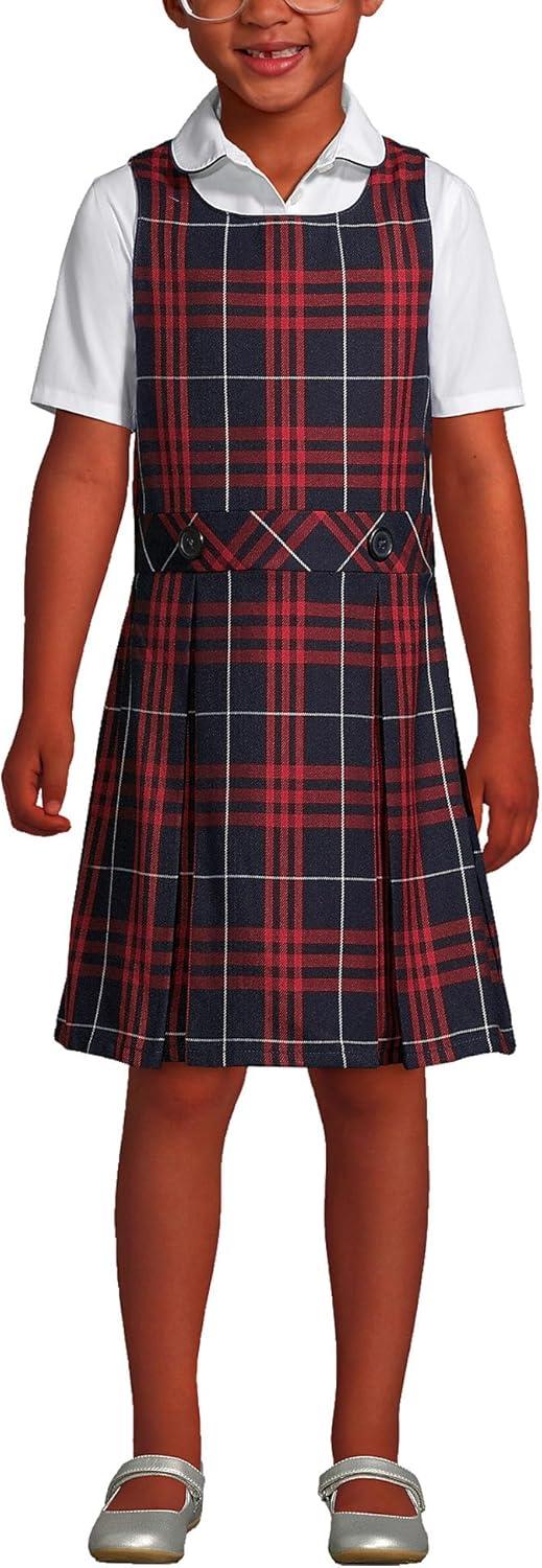 Lands’ End Girls Uniform Plaid Jumper(Classic Navy Large Plaid)