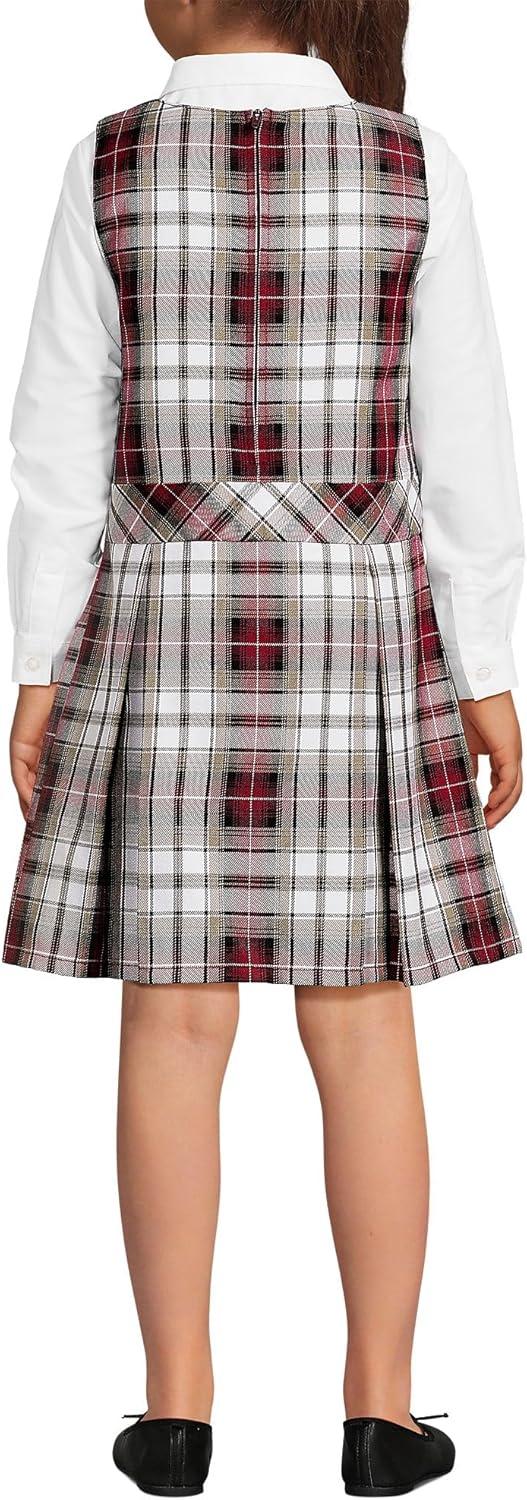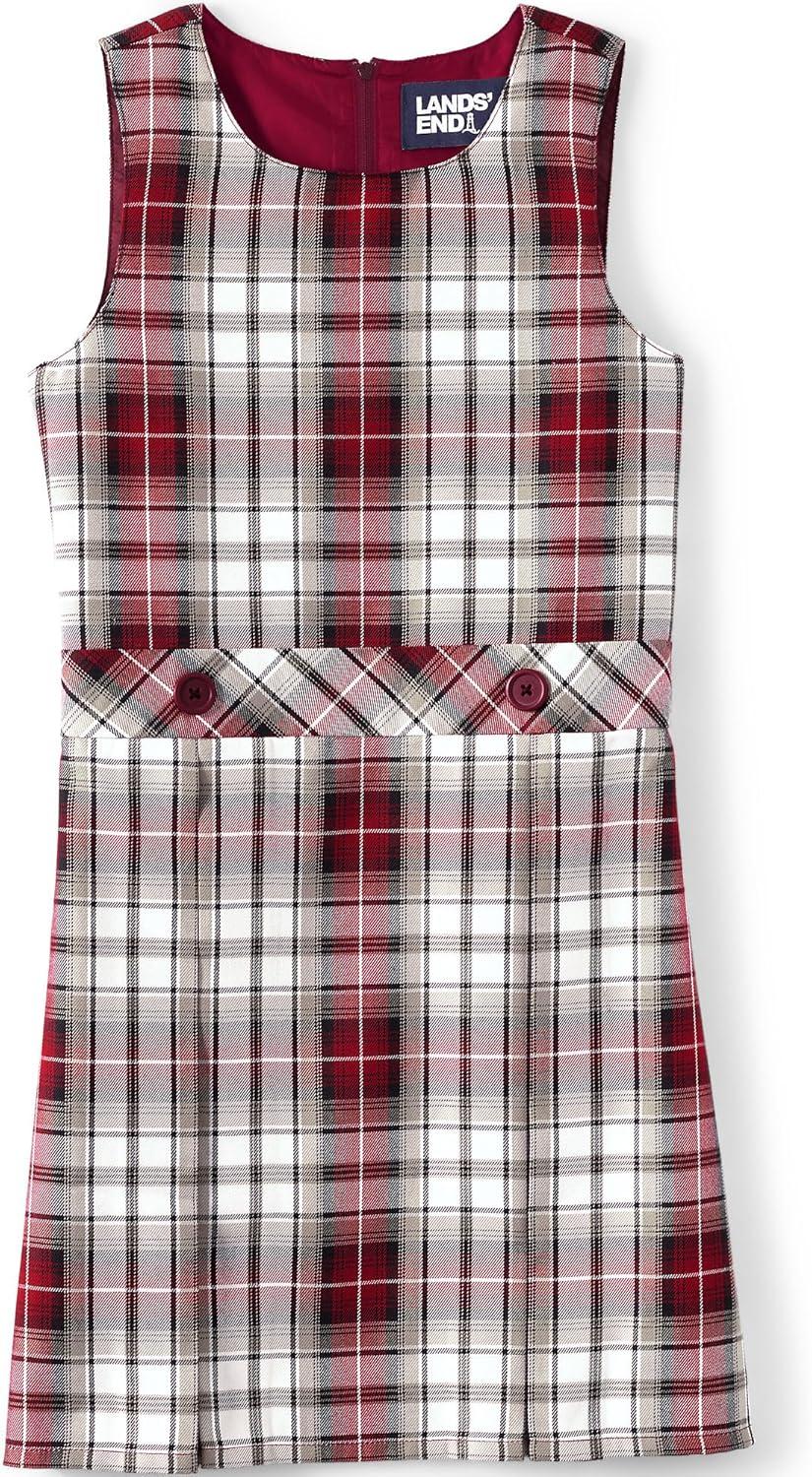 Lands’ End Girls Uniform Plaid Jumper(Garnet/Khaki Plaid)