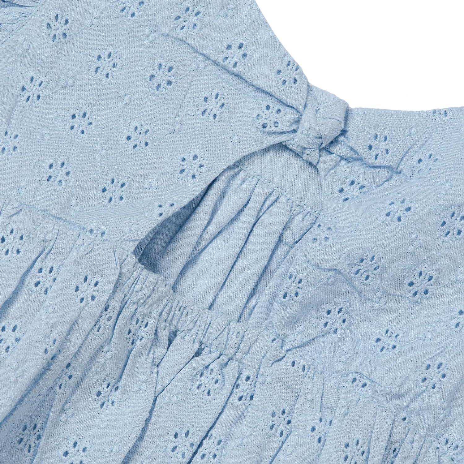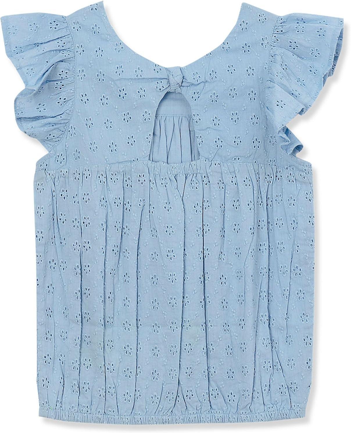 Lands’ End Girls Woven Eyelet Top(Copen Blue)