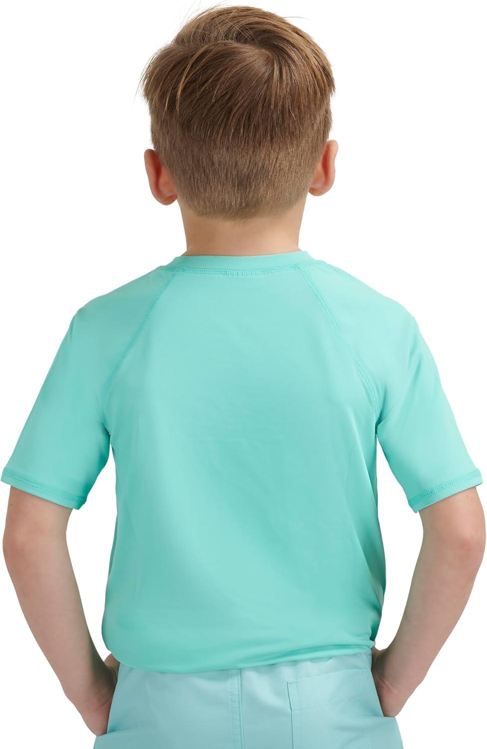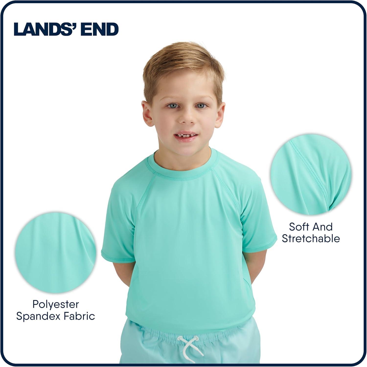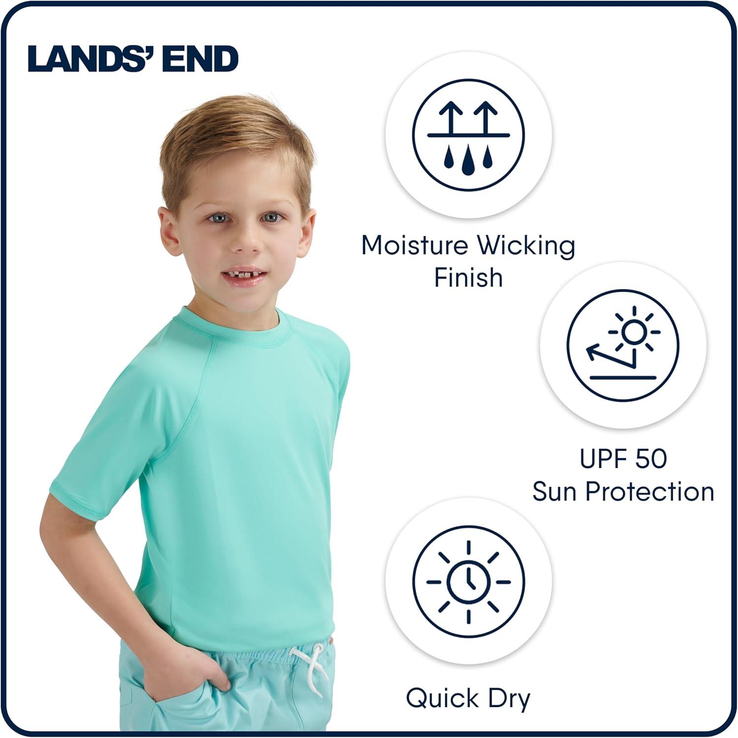 Lands’ End Kids Boys and Girls Swimwear UPF 50 Short Sleeve Rash Guard Shirt (XXS-XL)(Aqua Ice)