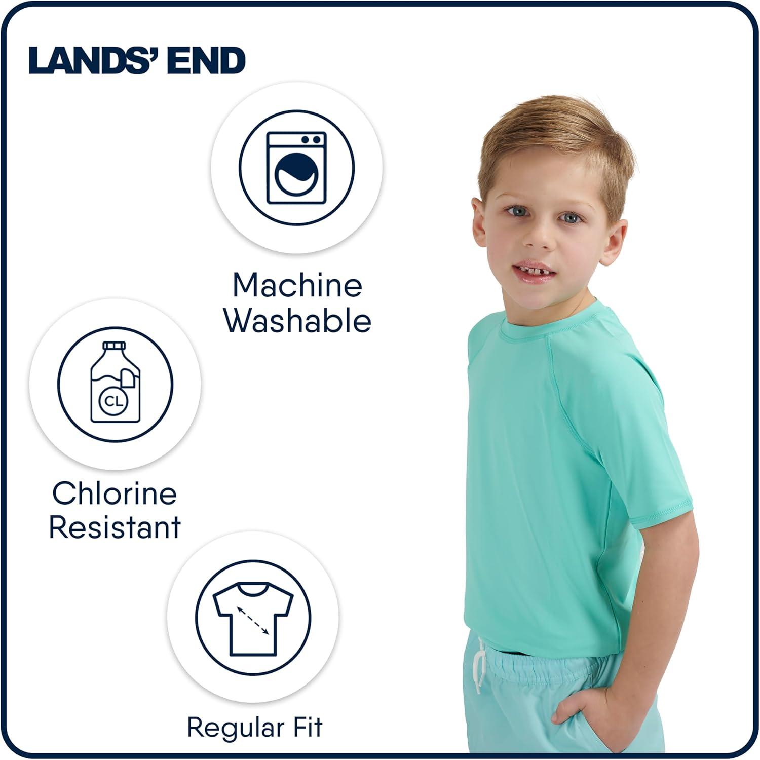 Prepare your children for endless fun in the sun with the Lands’ End Kids’ Rash Guard Shirt. This essential piece of swimwear combines the brand's signature comfort and style, offering a super soft and stretchable design for quick-drying comfort and reliable sun protection. Ideal for swimming, surfing, or simply playing outdoors, this rash guard keeps your kids comfortable and protected, whether they're at the pool, beach, or enjoying backyard water play. Its versatile design and vibrant colors make it a favorite for any water activity. Crafted with premium quality materials, this short-sleeve rash guard ensures exceptional comfort and durability. The moisture-wicking and chlorine-resistant polyester-spandex fabric delivers lightweight comfort, allowing for unrestricted movement in and out of the water. The soft and stretchy material feels gentle against the skin, while maintaining its shape and color even after repeated exposure to chlorine and sun. With built-in UPF 50 sun protection, this rash guard provides essential shielding from harmful UV rays, allowing your children to enjoy their outdoor adventures with confidence. Designed for convenience and ease of care, this rash guard is available in a wide range of sizes, from XX-Small to X-Large, ensuring a comfortable regular fit for both boys and girls. For a roomier feel, simply order a size up. The machine-washable fabric makes laundry a breeze, allowing you to quickly refresh the rash guard after every use. With its quick-drying properties and stylish design, the Lands’ End Kids’ Rash Guard Shirt is the perfect choice for any young water enthusiast seeking both comfort and reliable sun protection.