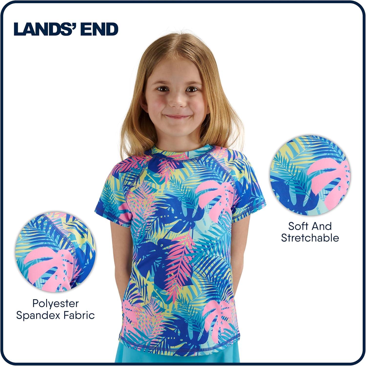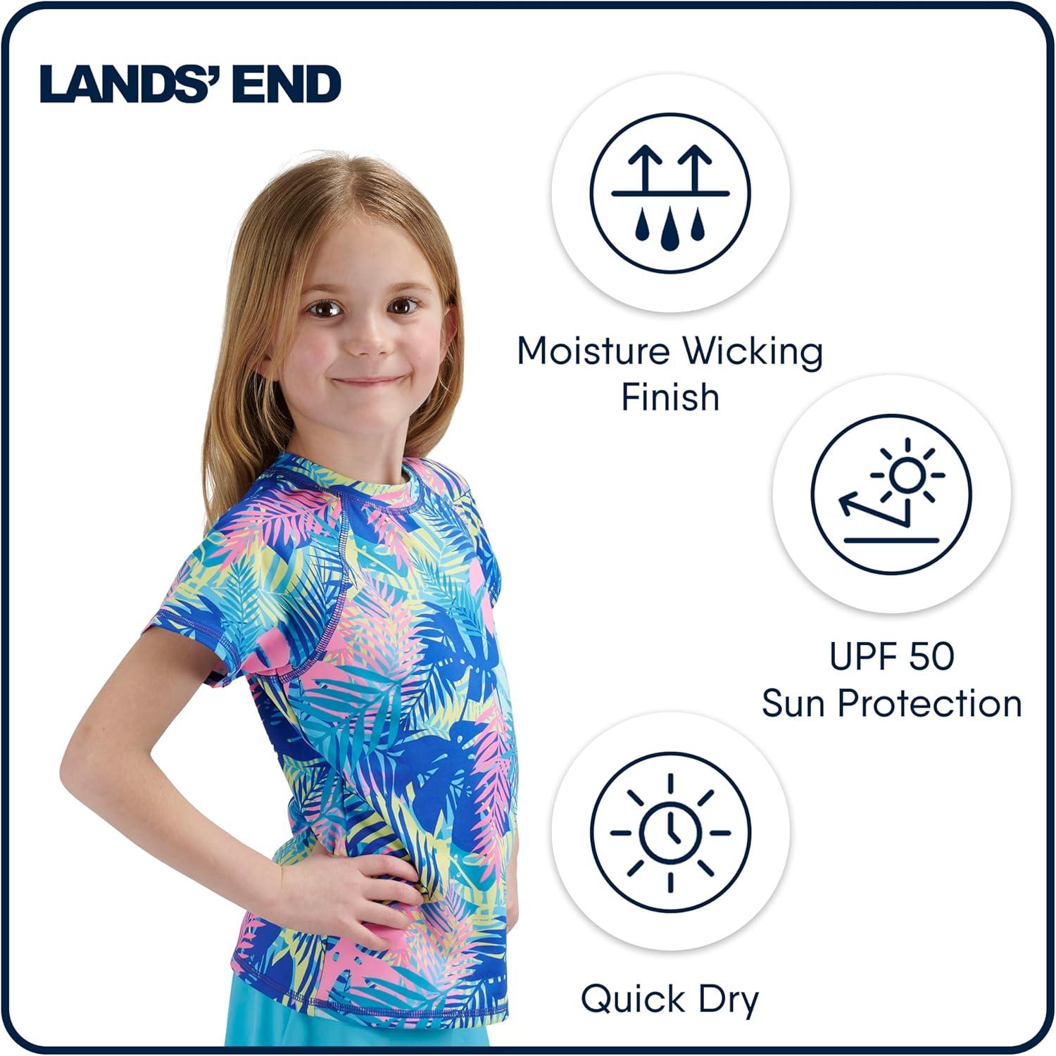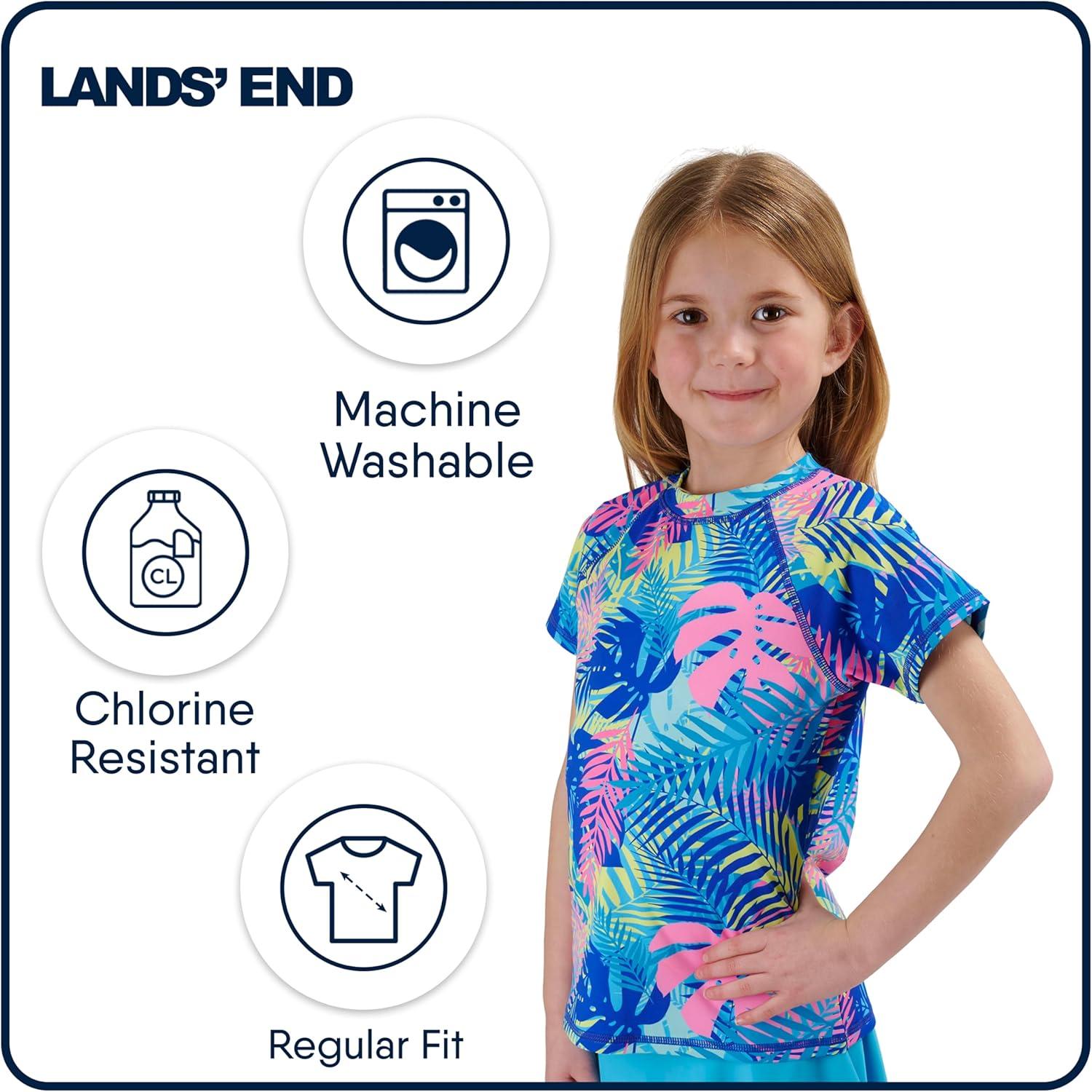 Prepare your children for endless fun in the sun with the Lands’ End Kids’ Rash Guard Shirt. This essential piece of swimwear combines the brand's signature comfort and style, offering a super soft and stretchable design for quick-drying comfort and reliable sun protection. Ideal for swimming, surfing, or simply playing outdoors, this rash guard keeps your kids comfortable and protected, whether they're at the pool, beach, or enjoying backyard water play. Its versatile design and vibrant colors make it a favorite for any water activity. Crafted with premium quality materials, this short-sleeve rash guard ensures exceptional comfort and durability. The moisture-wicking and chlorine-resistant polyester-spandex fabric delivers lightweight comfort, allowing for unrestricted movement in and out of the water. The soft and stretchy material feels gentle against the skin, while maintaining its shape and color even after repeated exposure to chlorine and sun. With built-in UPF 50 sun protection, this rash guard provides essential shielding from harmful UV rays, allowing your children to enjoy their outdoor adventures with confidence. Designed for convenience and ease of care, this rash guard is available in a wide range of sizes, from XX-Small to X-Large, ensuring a comfortable regular fit for both boys and girls. For a roomier feel, simply order a size up. The machine-washable fabric makes laundry a breeze, allowing you to quickly refresh the rash guard after every use. With its quick-drying properties and stylish design, the Lands’ End Kids’ Rash Guard Shirt is the perfect choice for any young water enthusiast seeking both comfort and reliable sun protection.