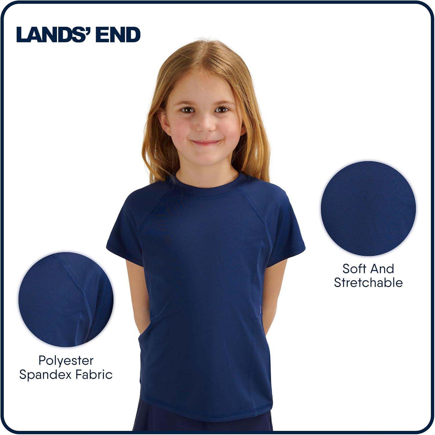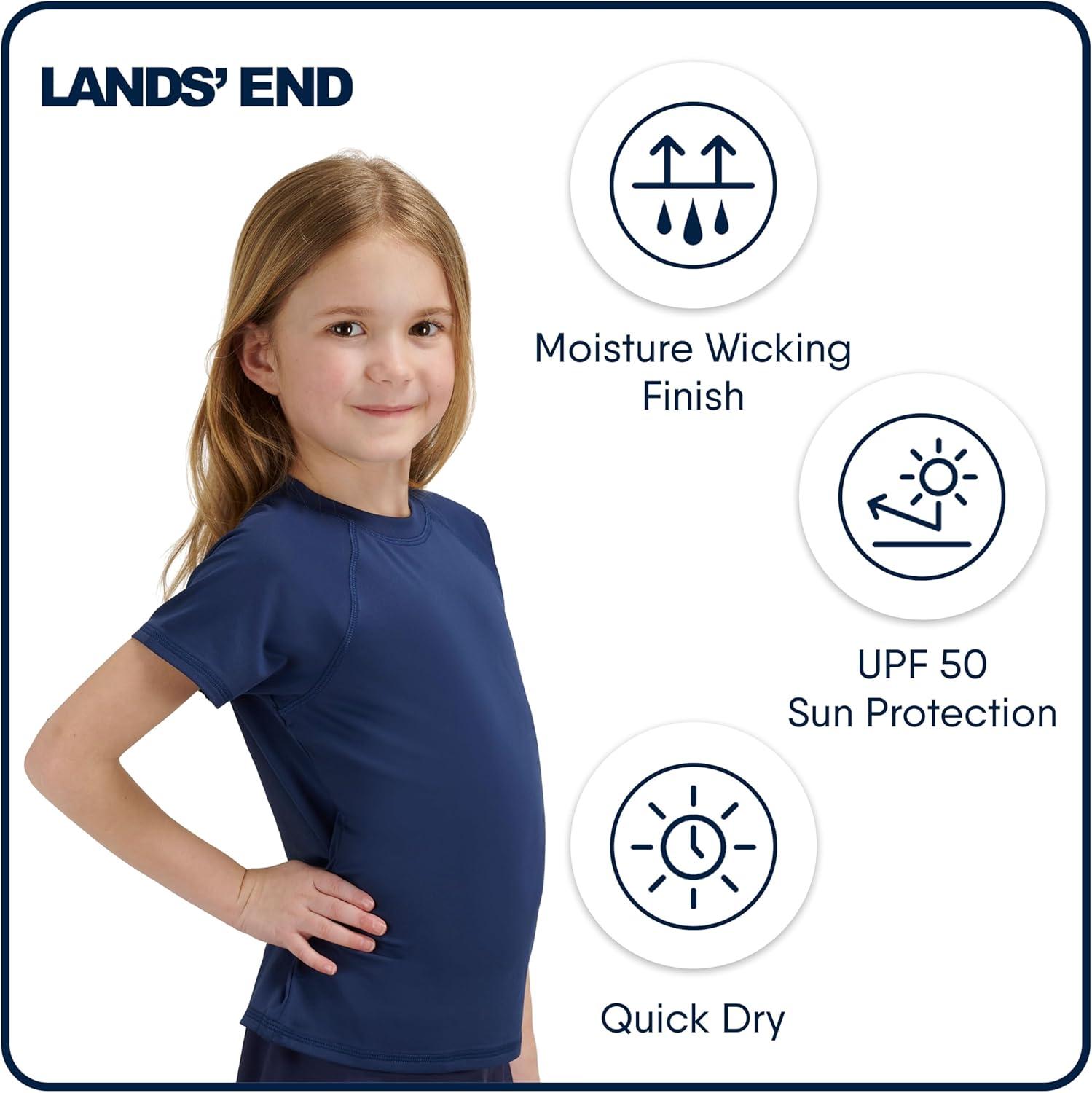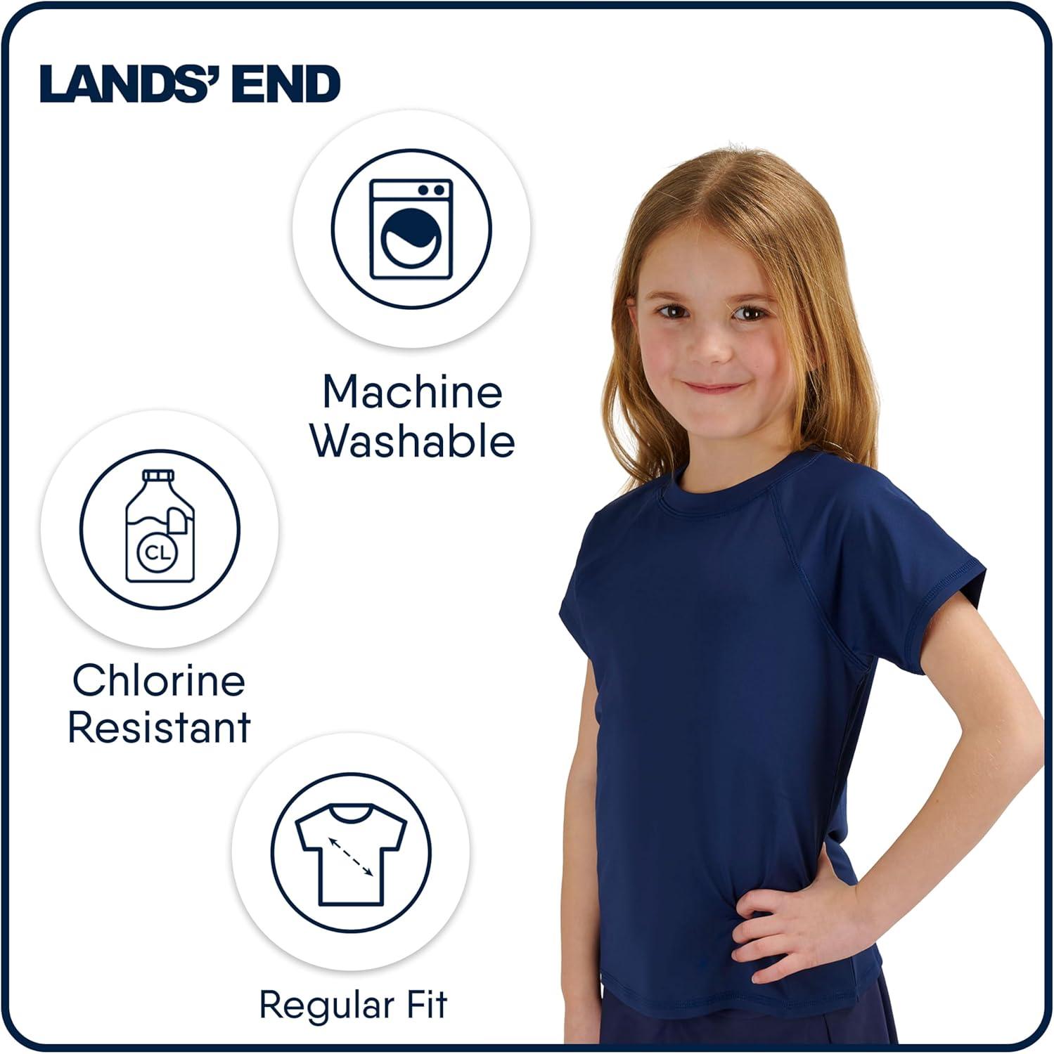 Prepare your children for endless fun in the sun with the Lands’ End Kids’ Rash Guard Shirt. This essential piece of swimwear combines the brand's signature comfort and style, offering a super soft and stretchable design for quick-drying comfort and reliable sun protection. Ideal for swimming, surfing, or simply playing outdoors, this rash guard keeps your kids comfortable and protected, whether they're at the pool, beach, or enjoying backyard water play. Its versatile design and vibrant colors make it a favorite for any water activity. Crafted with premium quality materials, this short-sleeve rash guard ensures exceptional comfort and durability. The moisture-wicking and chlorine-resistant polyester-spandex fabric delivers lightweight comfort, allowing for unrestricted movement in and out of the water. The soft and stretchy material feels gentle against the skin, while maintaining its shape and color even after repeated exposure to chlorine and sun. With built-in UPF 50 sun protection, this rash guard provides essential shielding from harmful UV rays, allowing your children to enjoy their outdoor adventures with confidence. Designed for convenience and ease of care, this rash guard is available in a wide range of sizes, from XX-Small to X-Large, ensuring a comfortable regular fit for both boys and girls. For a roomier feel, simply order a size up. The machine-washable fabric makes laundry a breeze, allowing you to quickly refresh the rash guard after every use. With its quick-drying properties and stylish design, the Lands’ End Kids’ Rash Guard Shirt is the perfect choice for any young water enthusiast seeking both comfort and reliable sun protection.