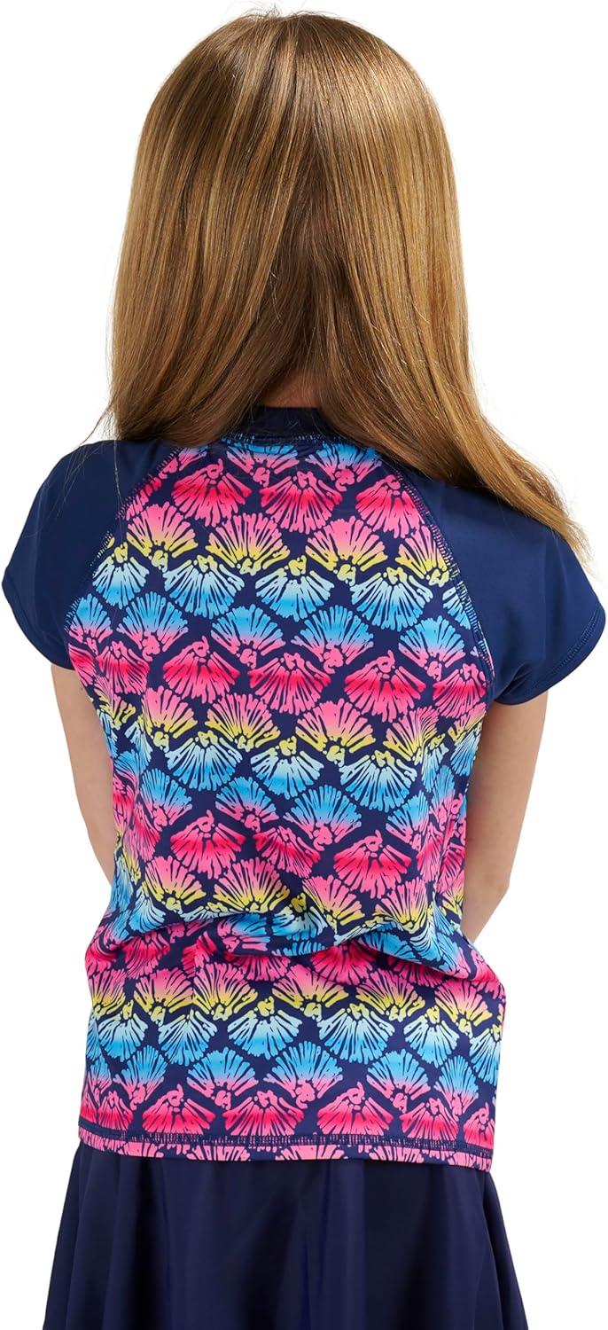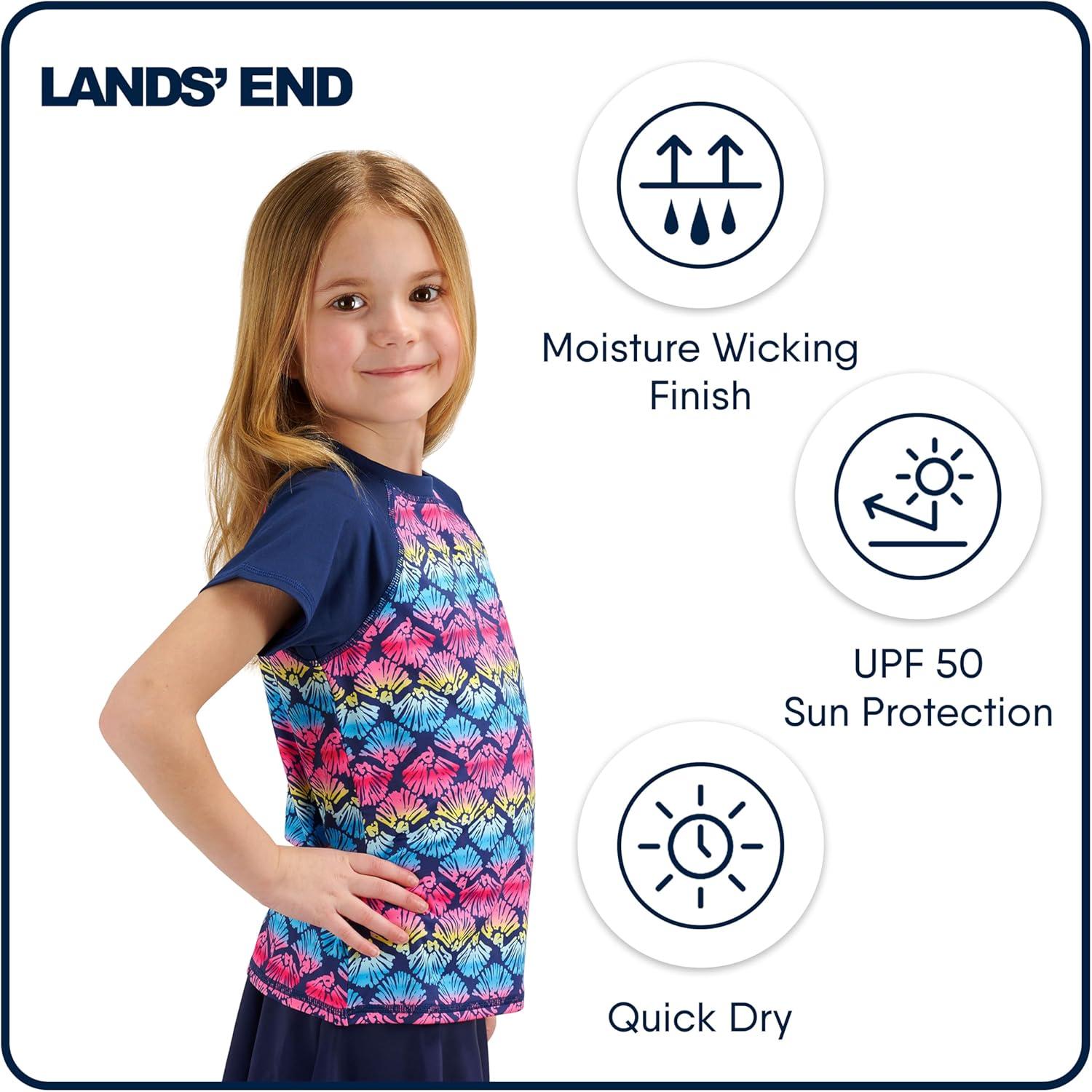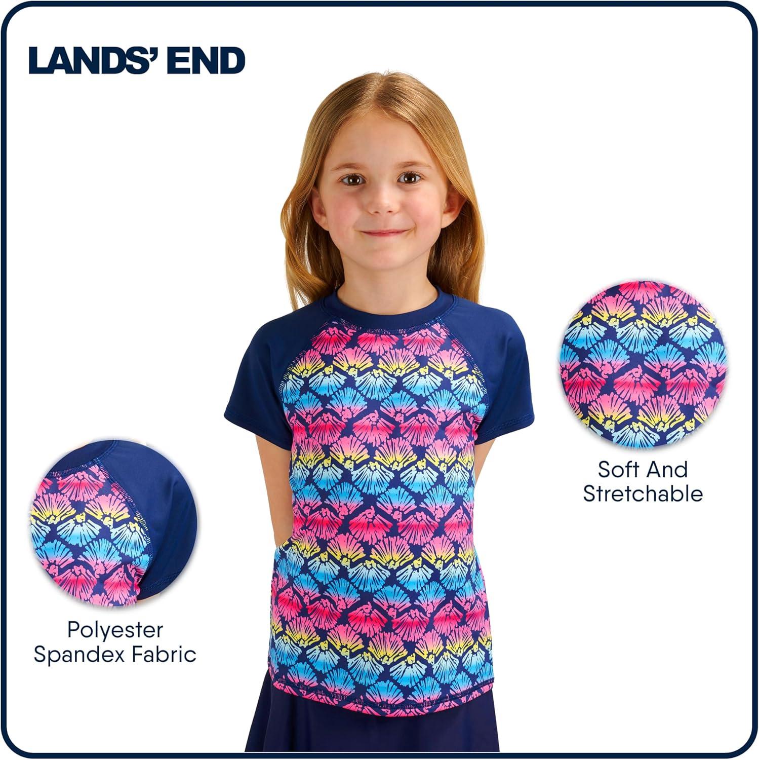 Prepare your children for endless fun in the sun with the Lands’ End Kids’ Rash Guard Shirt. This essential piece of swimwear combines the brand's signature comfort and style, offering a super soft and stretchable design for quick-drying comfort and reliable sun protection. Ideal for swimming, surfing, or simply playing outdoors, this rash guard keeps your kids comfortable and protected, whether they're at the pool, beach, or enjoying backyard water play. Its versatile design and vibrant colors make it a favorite for any water activity. Crafted with premium quality materials, this short-sleeve rash guard ensures exceptional comfort and durability. The moisture-wicking and chlorine-resistant polyester-spandex fabric delivers lightweight comfort, allowing for unrestricted movement in and out of the water. The soft and stretchy material feels gentle against the skin, while maintaining its shape and color even after repeated exposure to chlorine and sun. With built-in UPF 50 sun protection, this rash guard provides essential shielding from harmful UV rays, allowing your children to enjoy their outdoor adventures with confidence. Designed for convenience and ease of care, this rash guard is available in a wide range of sizes, from XX-Small to X-Large, ensuring a comfortable regular fit for both boys and girls. For a roomier feel, simply order a size up. The machine-washable fabric makes laundry a breeze, allowing you to quickly refresh the rash guard after every use. With its quick-drying properties and stylish design, the Lands’ End Kids’ Rash Guard Shirt is the perfect choice for any young water enthusiast seeking both comfort and reliable sun protection.
