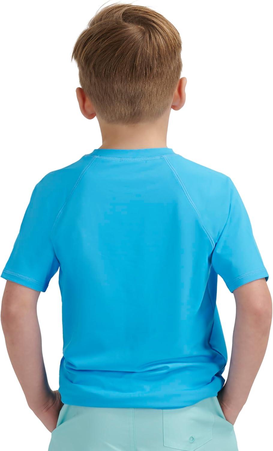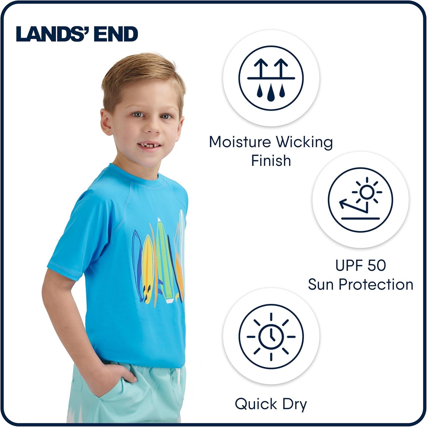 Lands’ End Kids Boys and Girls Swimwear UPF 50 Short Sleeve Rash Guard Shirt (XXS-XL)(Malibu Blue)