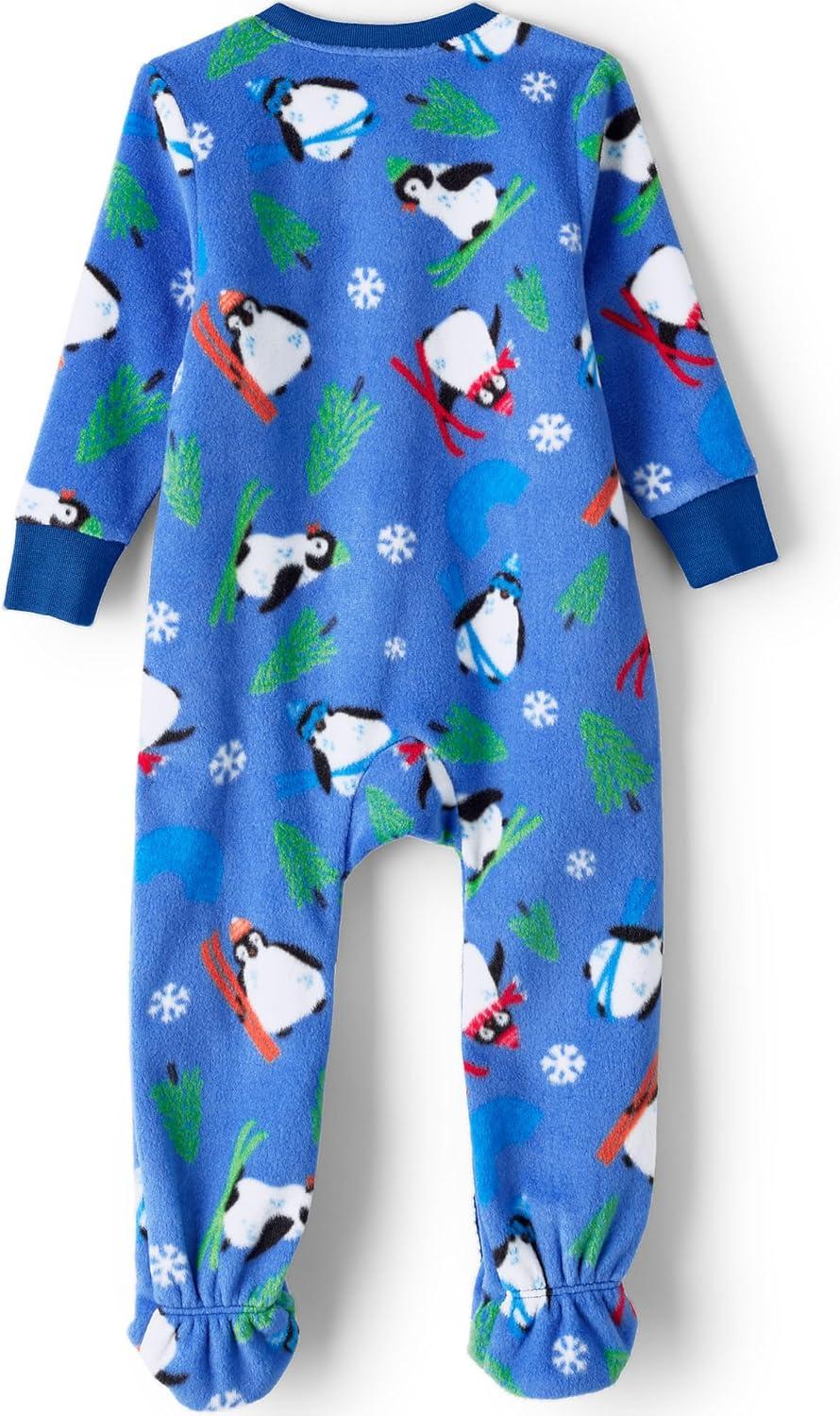 Lands’ End Kids Footed Fleece Sleeper(Blue Winter Penguins)