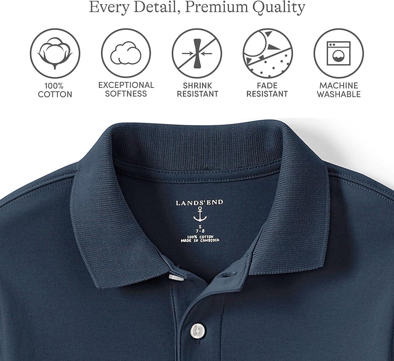Lands’ End Kids School Uniform Polo – 100% Cotton Comfort That Lasts All Year, Easy-Care, Short Sleeve(Classic Navy)