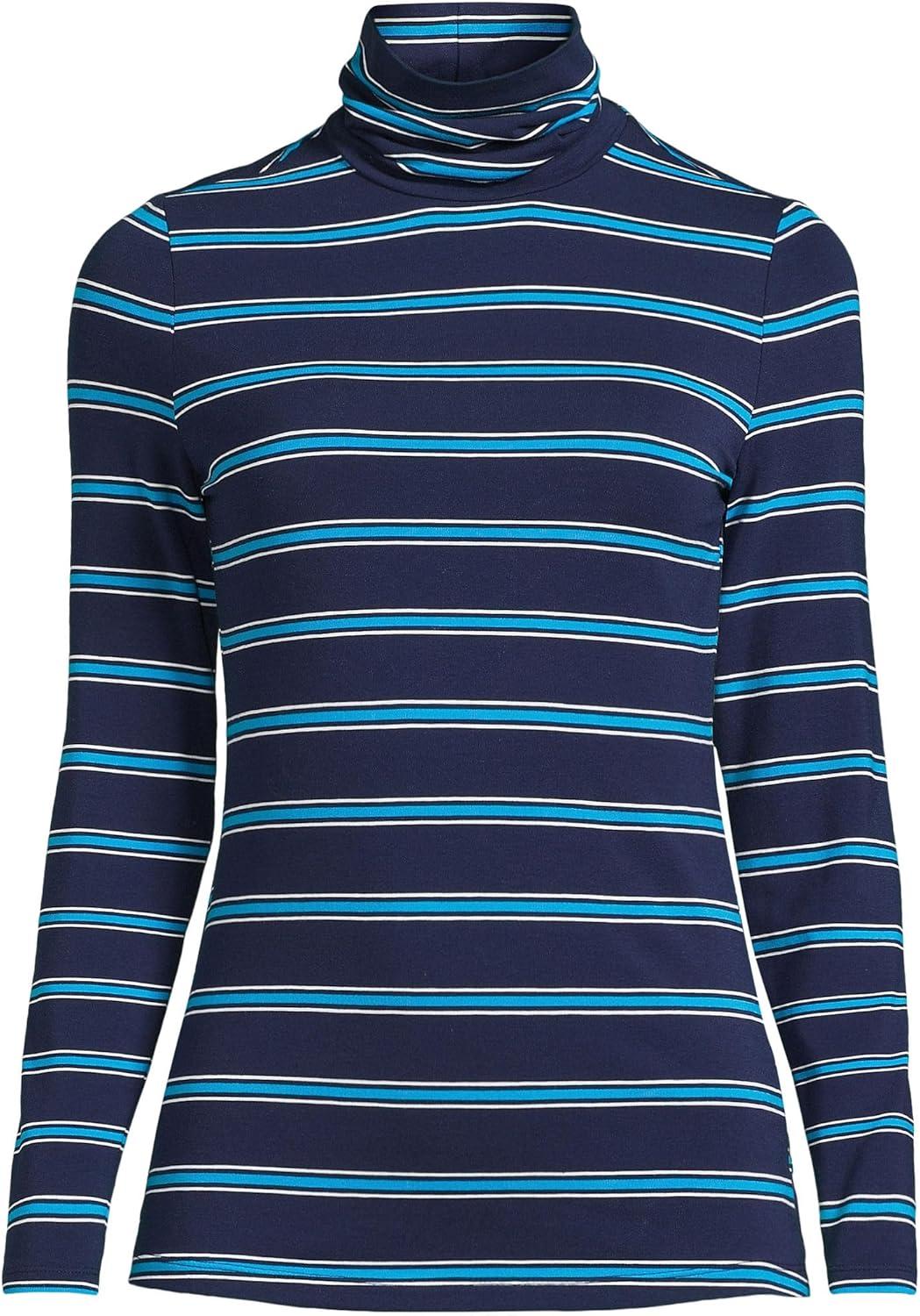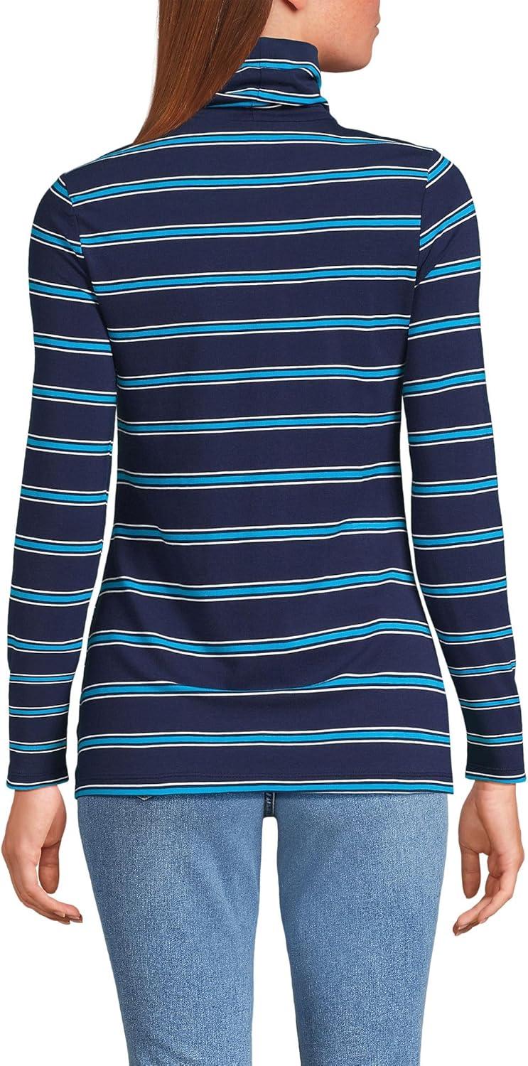 Lands’ End Lightweight Jersey Long Sleeve Turtleneck(Deep Sea/Cyan Stripe)