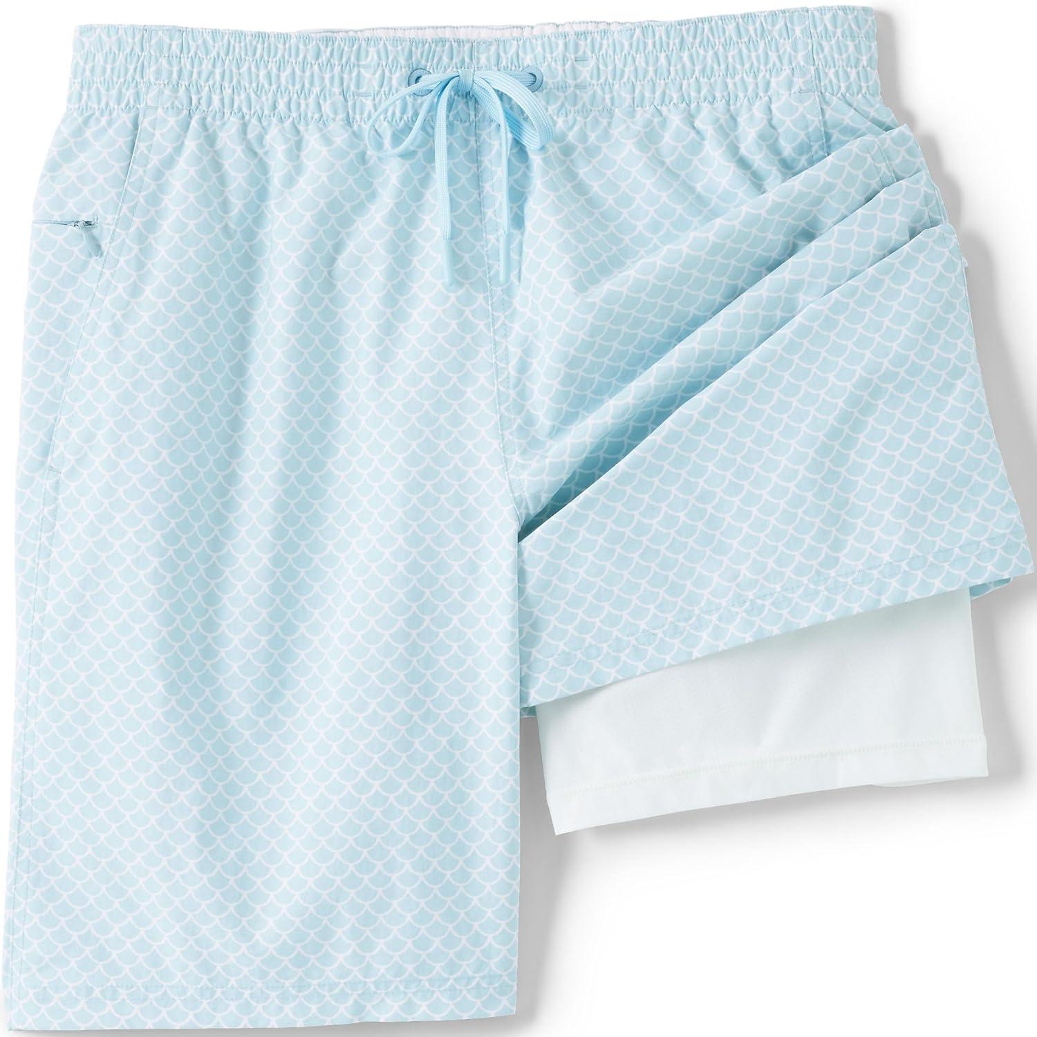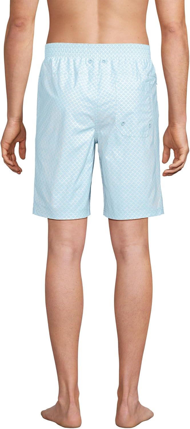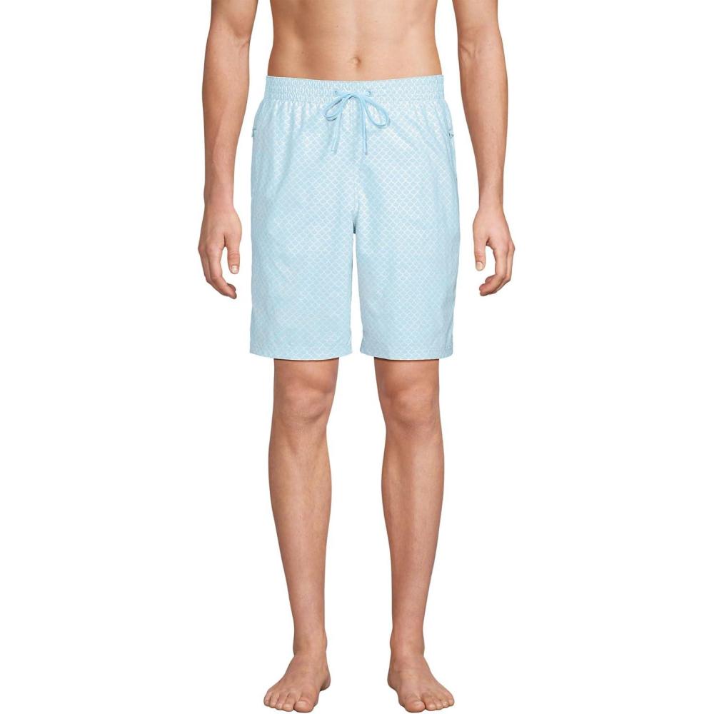 Lands’ End Men’s 9″ Volley Hydroliner Swim Trunks(Light Blue Scales)