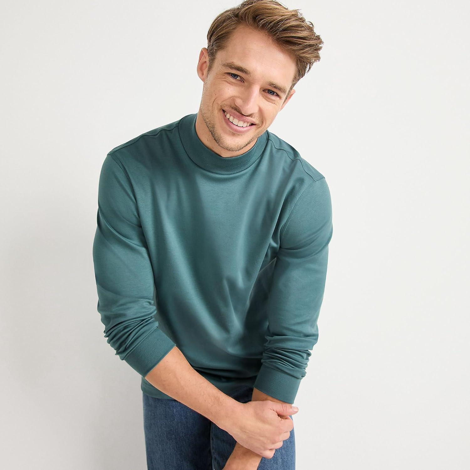 Lands’ End Men’s American-Grown Supima Cotton Mock Turtleneck Shirt(Tourmaline)