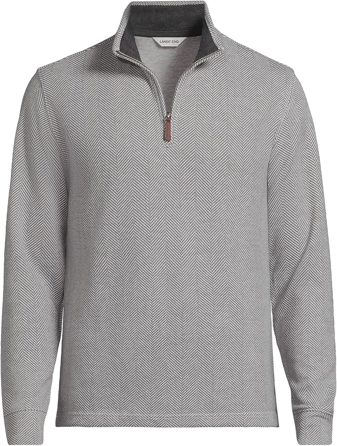 Lands’ End Men’s Bedford Rib Casual Quarter Zip Sweater(Charcoal Heather Herringbone)