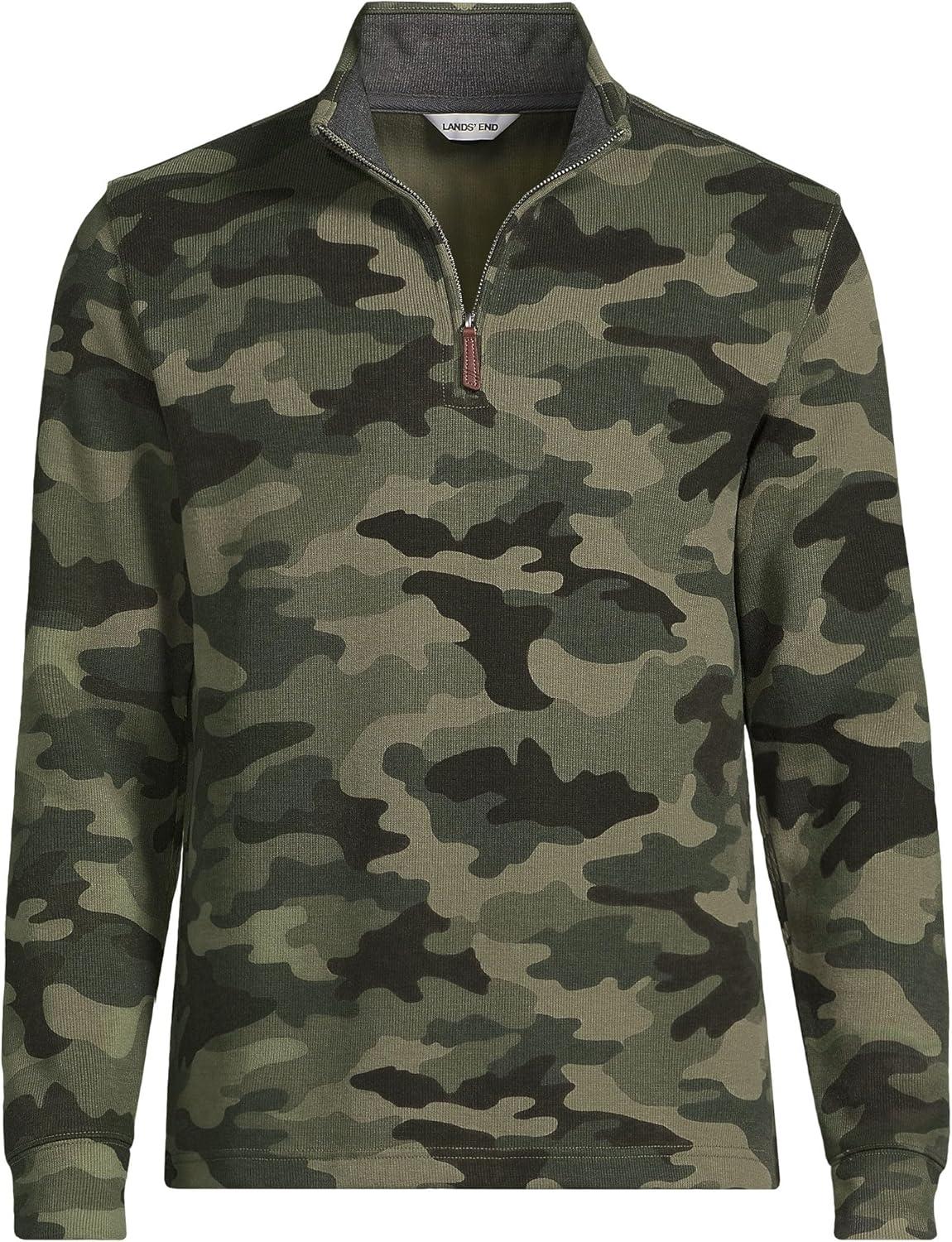 Lands’ End Men’s Bedford Rib Casual Quarter Zip Sweater(River Stone Green Camo)