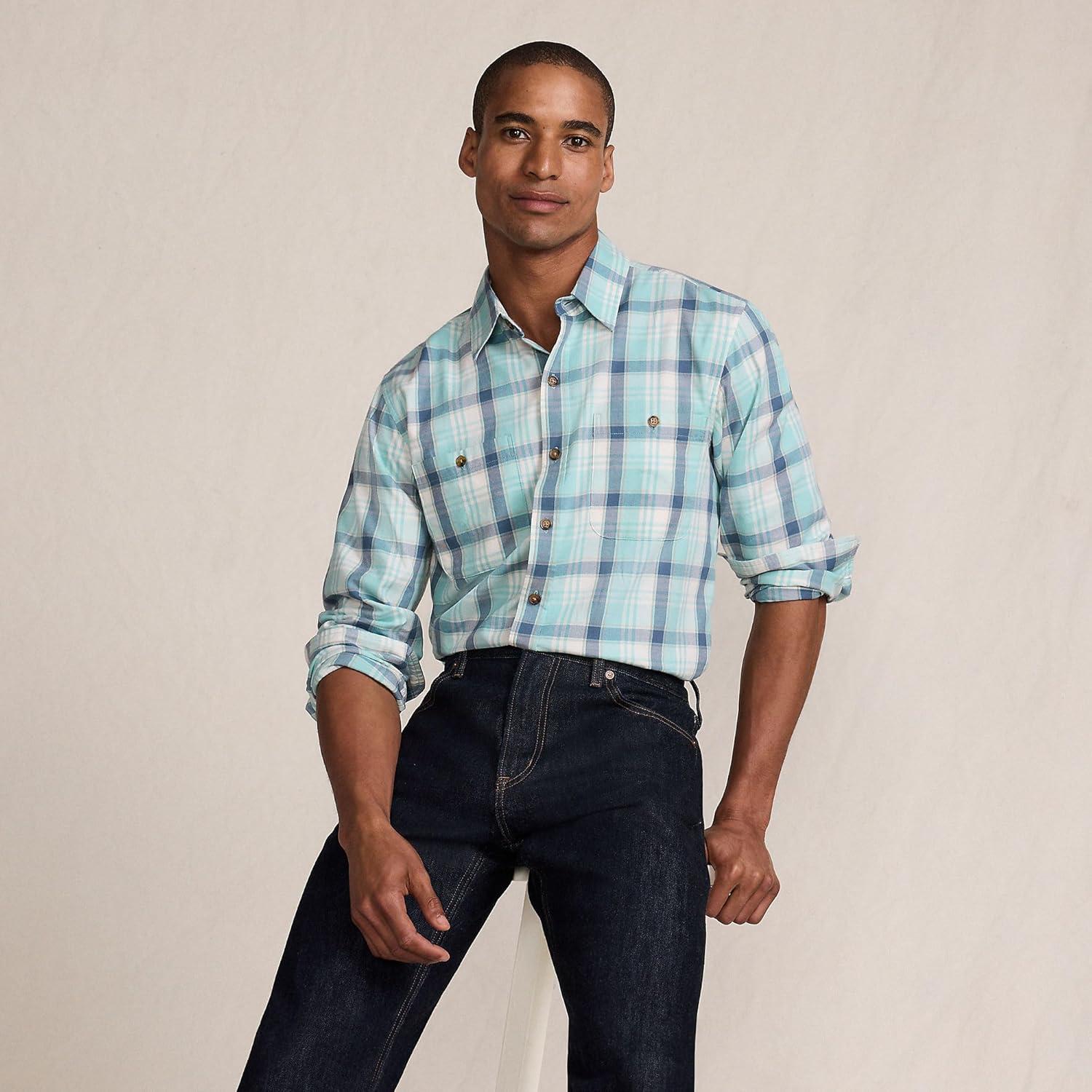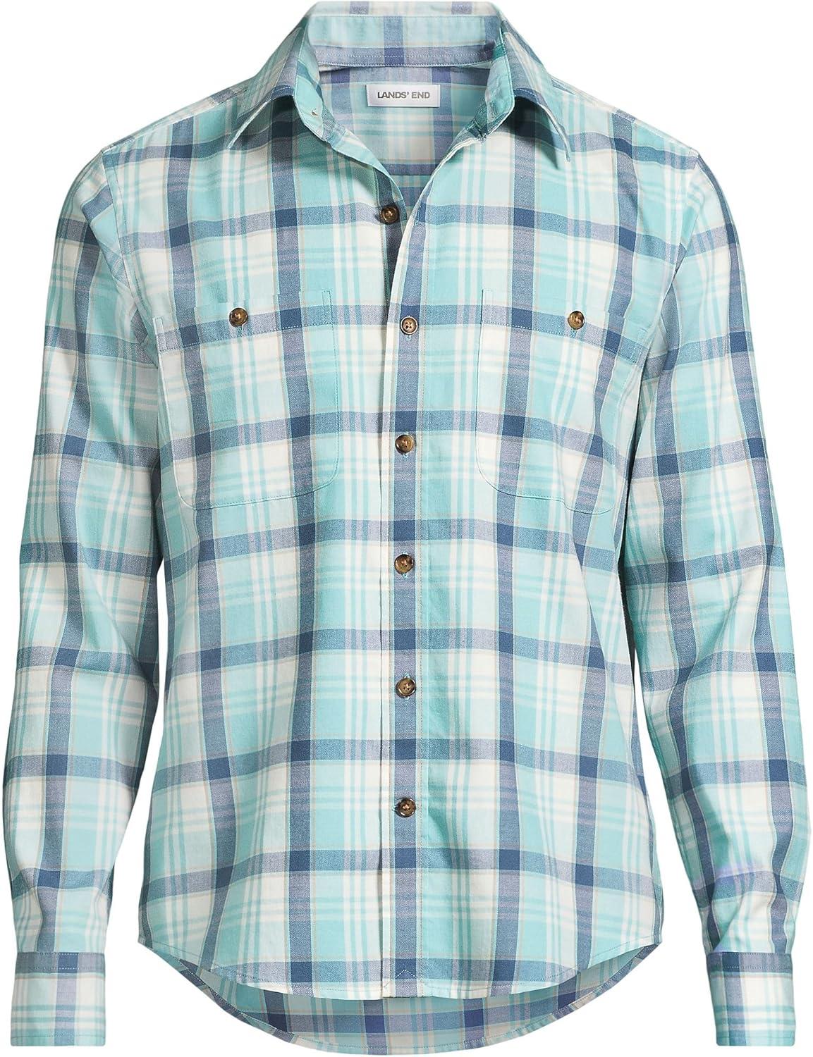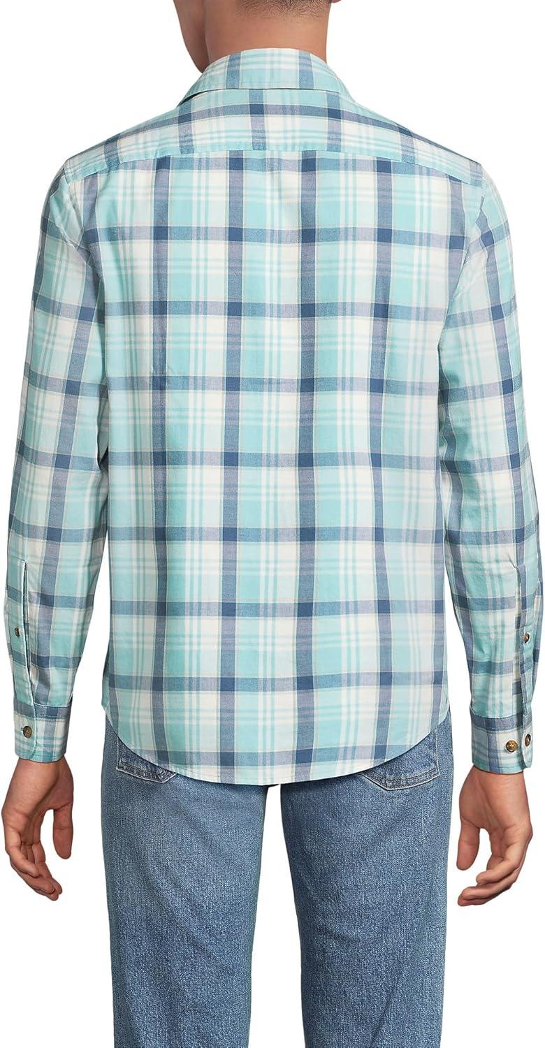 Lands’ End Men’s Coastal Flannel(Mint Sky/Blue Plaid)